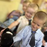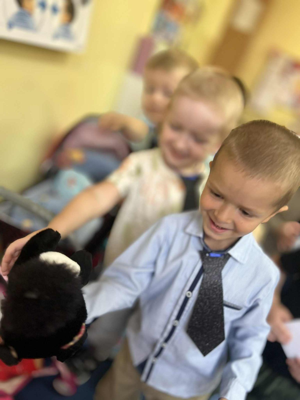 Głównym punktem dnia było uroczyste odśpiewanie „Sto lat” przez dziewczynki, które z ogromnym zaangażowaniem wyraziły swoje życzenia dla chłopców oraz wręczenie odznak Super Agenta. Oprócz oficjalnej części uroczystości, dzień upłynął w niezwykle miłej atmosferze. Sówki spędziły czas na wspólnych zabawach i grach, a wszyscy cieszyli się z możliwości spędzenia tego wyjątkowego dnia razem. Śmiech i radosne okrzyki rozbrzmiewały w całym przedszkolu, a dzieci wzajemnie okazywały sobie sympatię i życzliwość. Dzień Chłopaka w naszym przedszkolu stał się wspaniałą okazją do integracji grupy oraz wzmocnienia więzi między dziećmi. Wspólna zabawa i serdeczne gesty sprawiły, że każdy chłopiec poczuł się tego dnia wyjątkowo. Dzięki zaangażowaniu dziewczynek, które złożyły życzenia i wręczyły prezenty, dzień ten na długo pozostanie w pamięci wszystkich przedszkolaków. To był dzień pełen uśmiechów, radości i dobrej zabawy!
