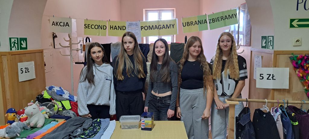 W ramach szkolnego kiermaszu charytatywnego udało się zebrać 2300 zł, które przeznaczono na zakup środków czystości oraz innych artykułów chemicznych. Za pozostałą, niesprzedaną odzież otrzymano bon do wykorzystania w dyskoncie Second Hand Biga. Dodatkowo akcję wsparła Pani Paulina Hudy, ajentka dyskontu, przekazując artykuły chemiczne.