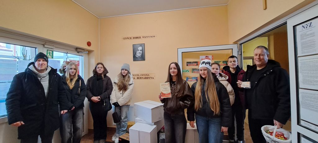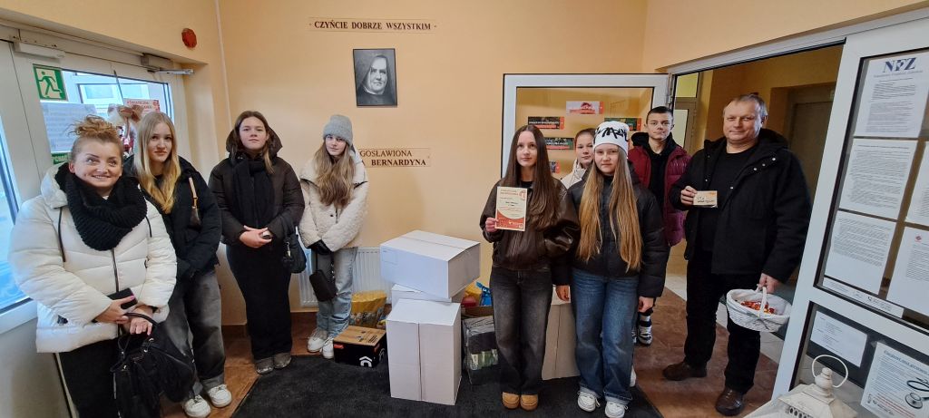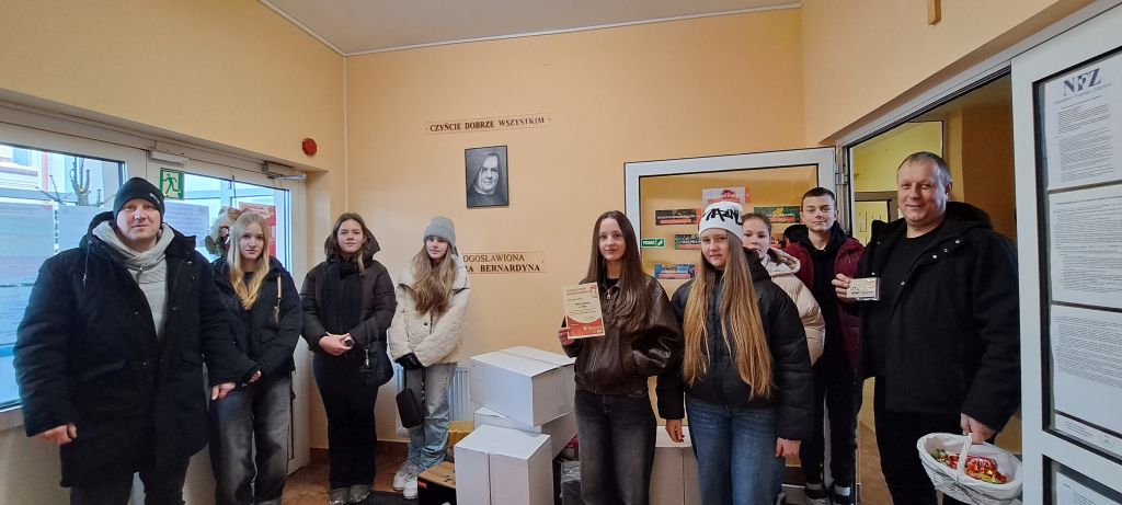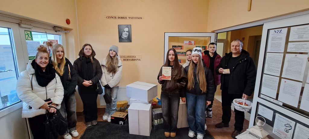 W dniu 10 stycznia uczniowie Szkolnego Klubu Wolontariatu, pod opieką pani Niny Wiercioch i pana Tomasza Rogowskiego, przekazali zebrane dary Miechowskiemu Hospicjum.