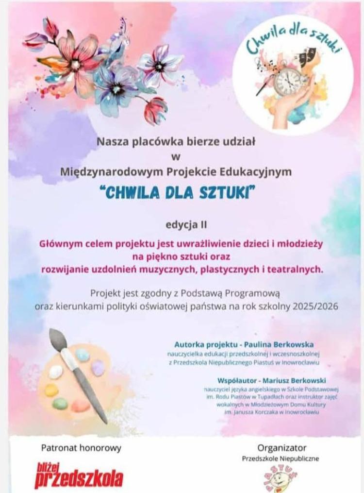 Międzynarodowy Projekt Edukacyjny „Chwila dla sztuki”.