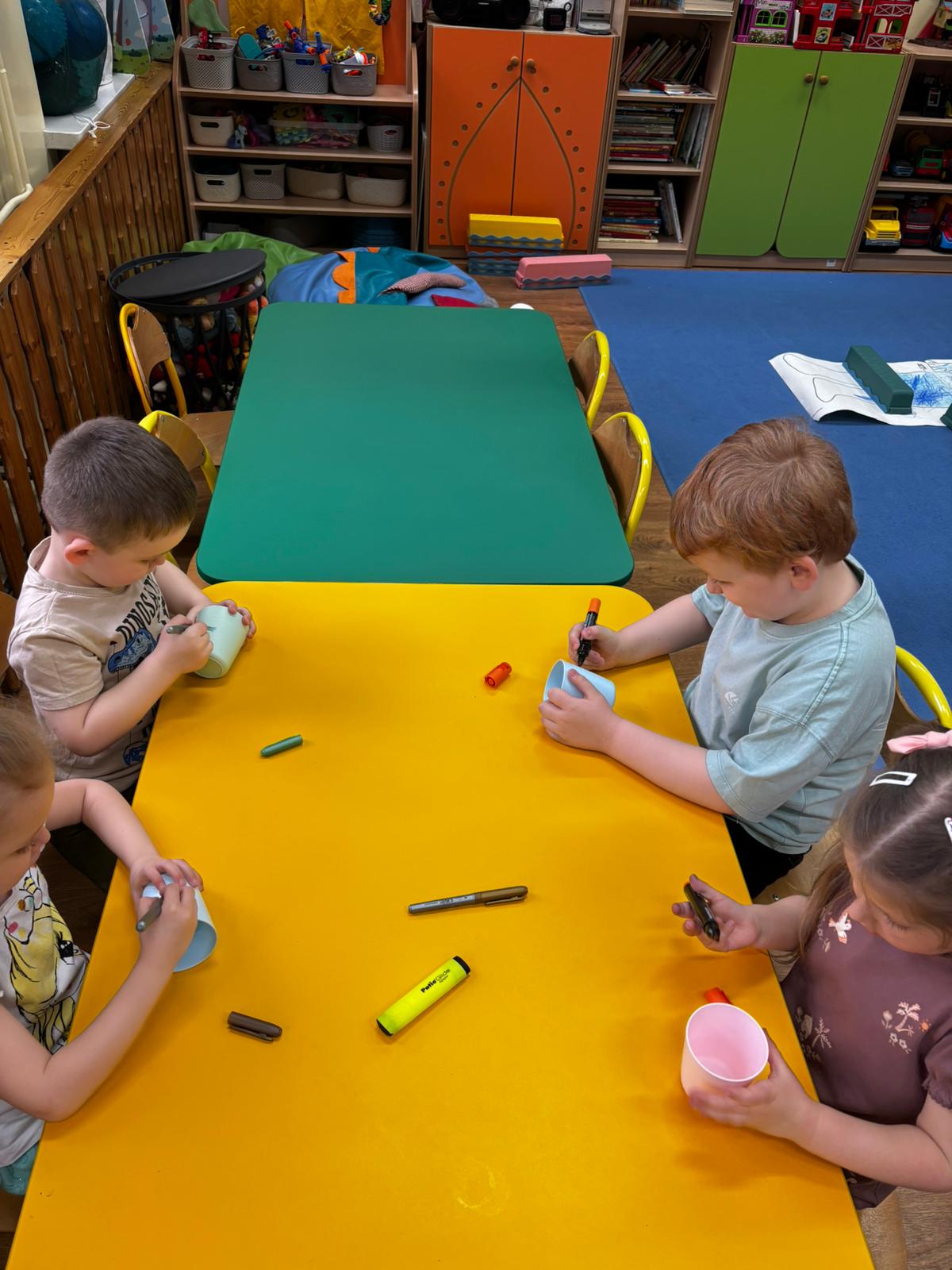 Dzieci z grupy Misie uczą się jak ważna w życiu każdego człowieka jest woda. Na zajęciach dowiedziały się ile masy dziecka stanowi woda. W jaki sposób ją tracimy i kiedy należy ją uzupełniać, aby zapewnić organizmowi prawidłowe funkcjonowanie. Na koniec każdy ozdobił swój kubek, aby móc pić z niego wodę.