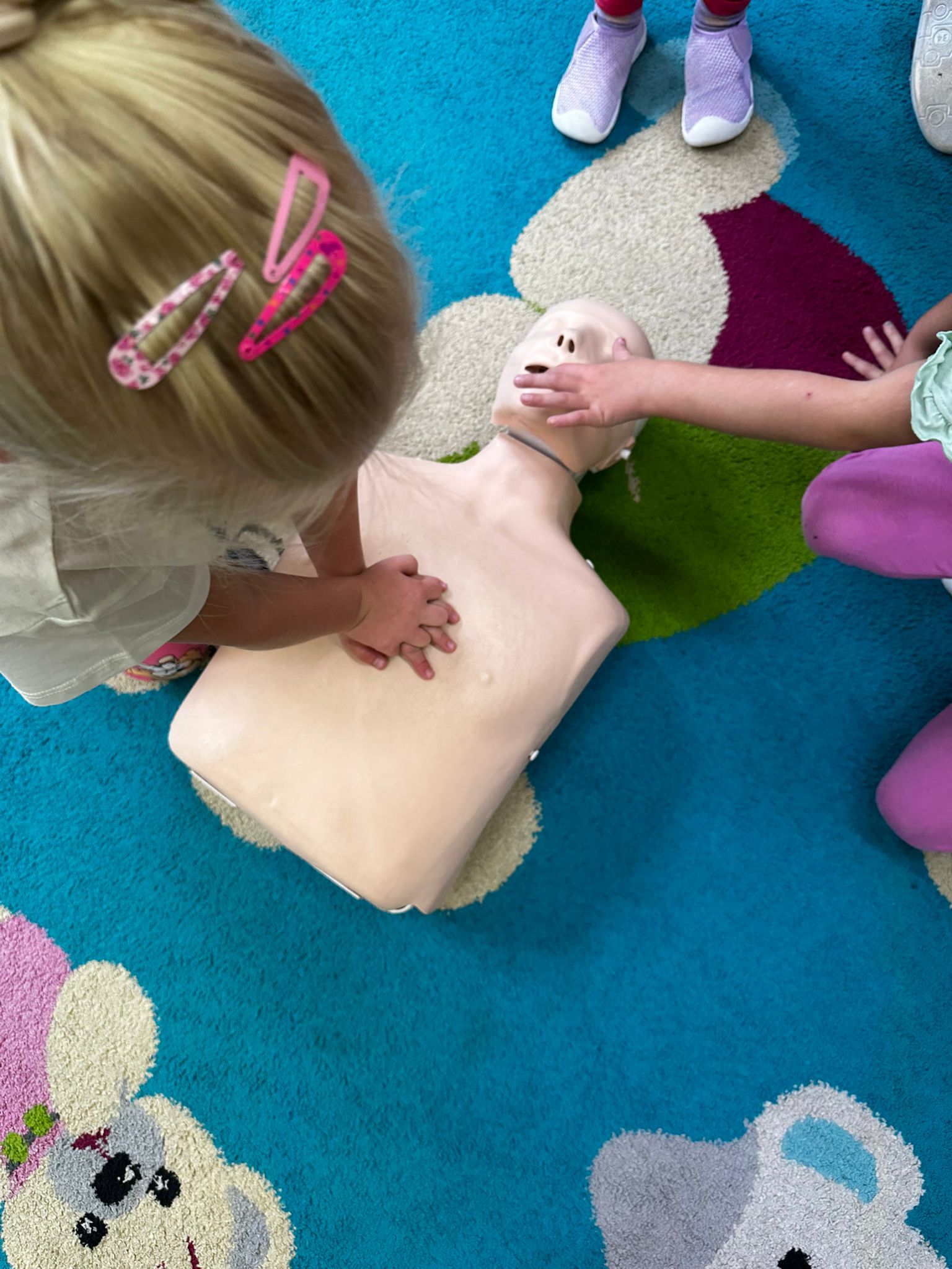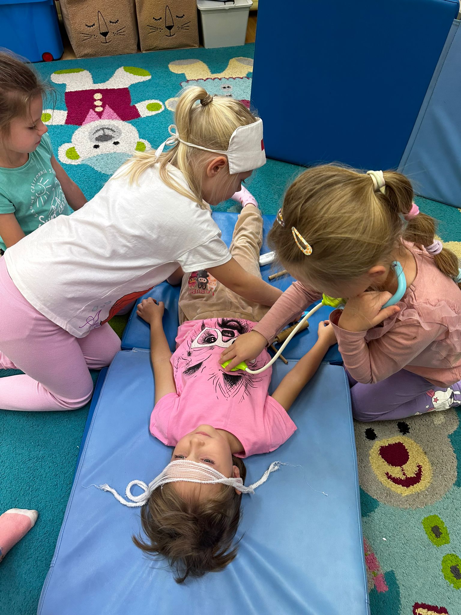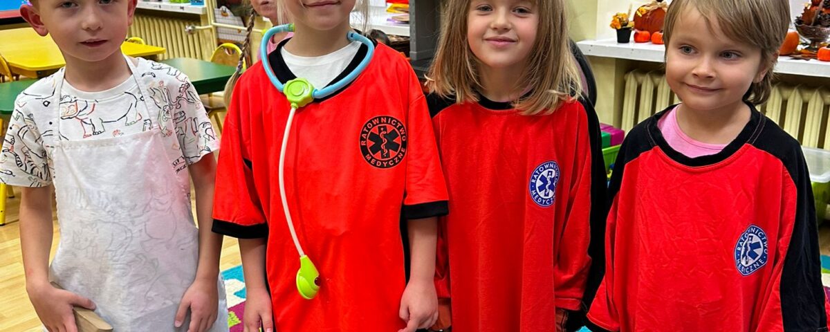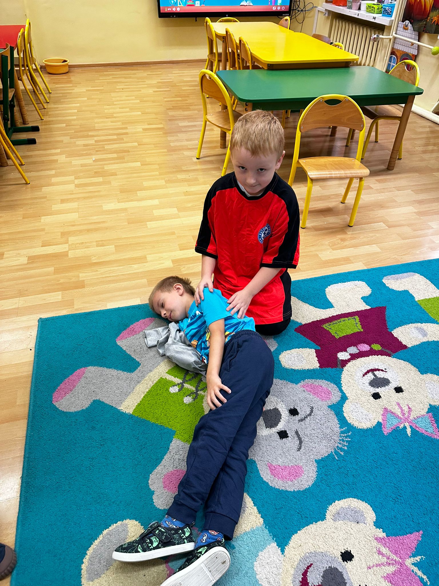 Udzielanie pierwszej pomocy jest naszym obowiązkiem, jednak bardzo często w sytuacjach zagrożenia nie wiemy jak się zachować i jak pomóc osobie, która tej pomocy potrzebuje. Dzieci często nie mają oporów i nie odczuwają strachu, działają instynktownie. Z tego powodu, już od najmłodszych lat powinniśmy instruować je, jak należy zachować się w sytuacji, gdy ktoś potrzebuje naszej pomocy. We wrześniu podczas zajęć Zerówkowicze mogły poczuć się jak mali ratownicy. Poznały procedury zachowania się w sytuacjach zagrożenia życia, ćwiczyły czynności ratownicze w czasie zasłabnięć oraz utrwalili numery alarmowe . Po tej lekcji dzieci już wiedzą, na czym polega ich rola w sytuacji, kiedy trzeba komuś pomóc.