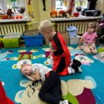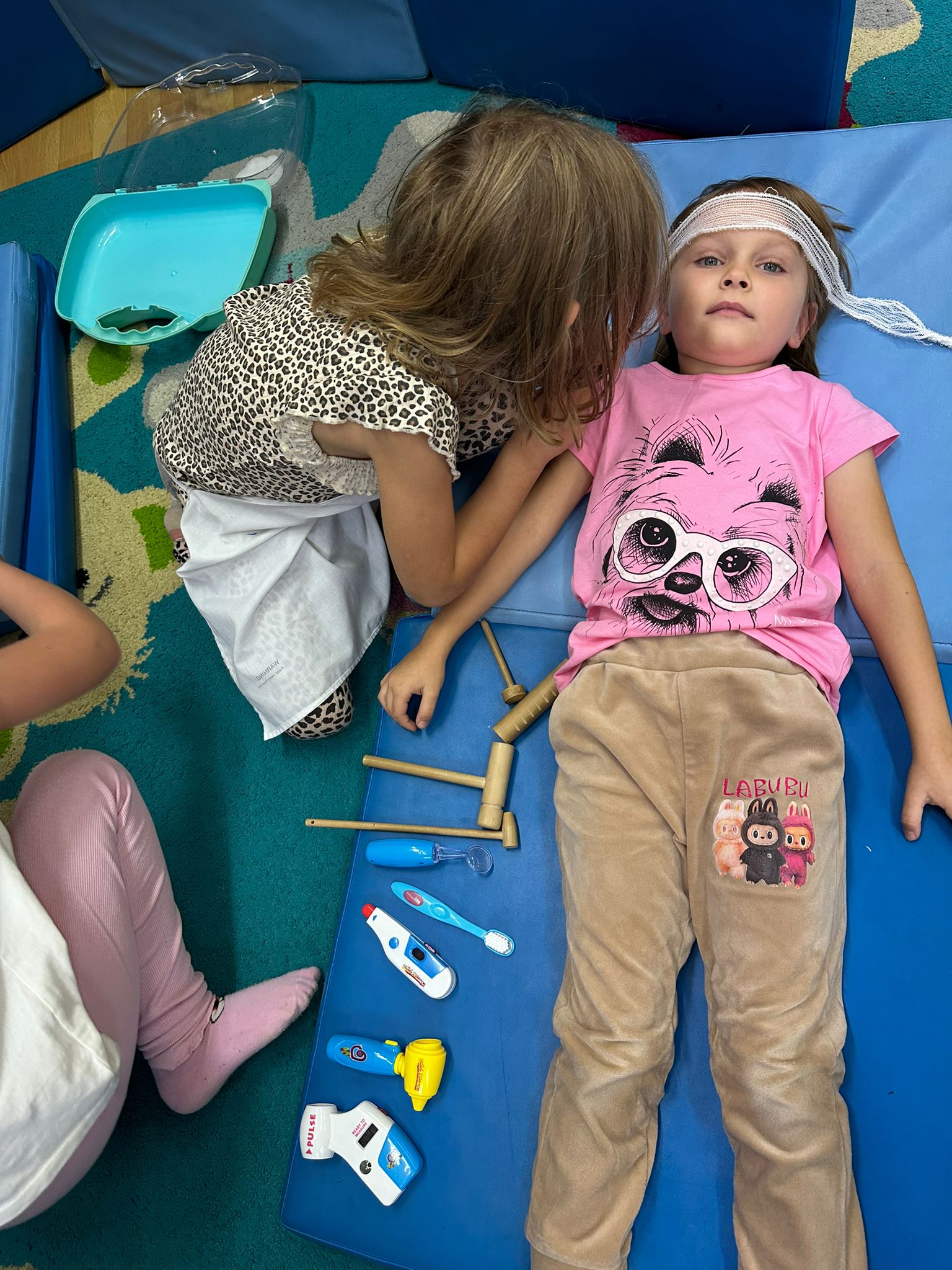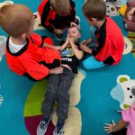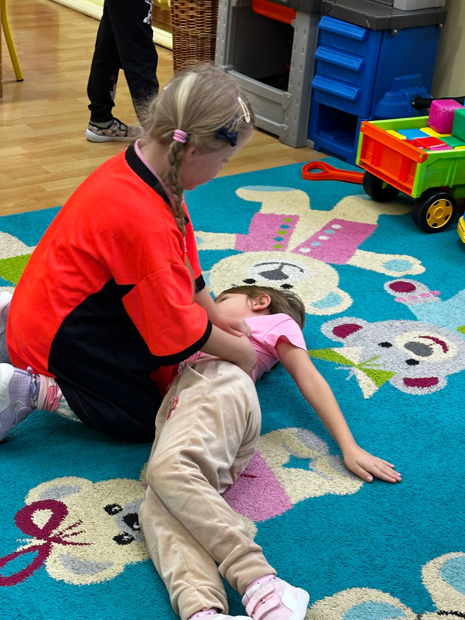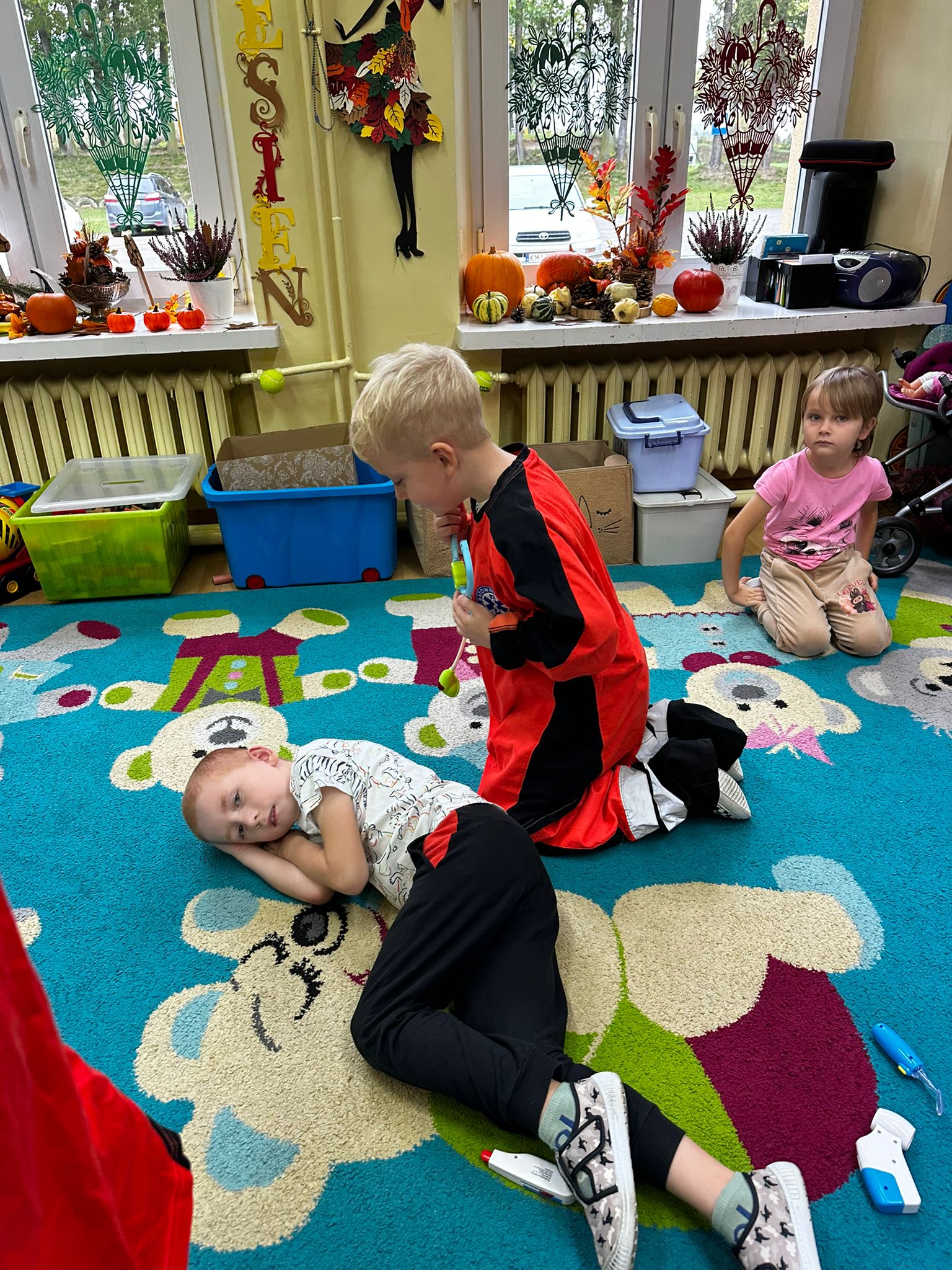 Udzielanie pierwszej pomocy jest naszym obowiązkiem, jednak bardzo często w sytuacjach zagrożenia nie wiemy jak się zachować i jak pomóc osobie, która tej pomocy potrzebuje. Dzieci często nie mają oporów i nie odczuwają strachu, działają instynktownie. Z tego powodu, już od najmłodszych lat powinniśmy instruować je, jak należy zachować się w sytuacji, gdy ktoś potrzebuje naszej pomocy. We wrześniu podczas zajęć Zerówkowicze mogły poczuć się jak mali ratownicy. Poznały procedury zachowania się w sytuacjach zagrożenia życia, ćwiczyły czynności ratownicze w czasie zasłabnięć oraz utrwalili numery alarmowe . Po tej lekcji dzieci już wiedzą, na czym polega ich rola w sytuacji, kiedy trzeba komuś pomóc.