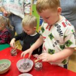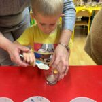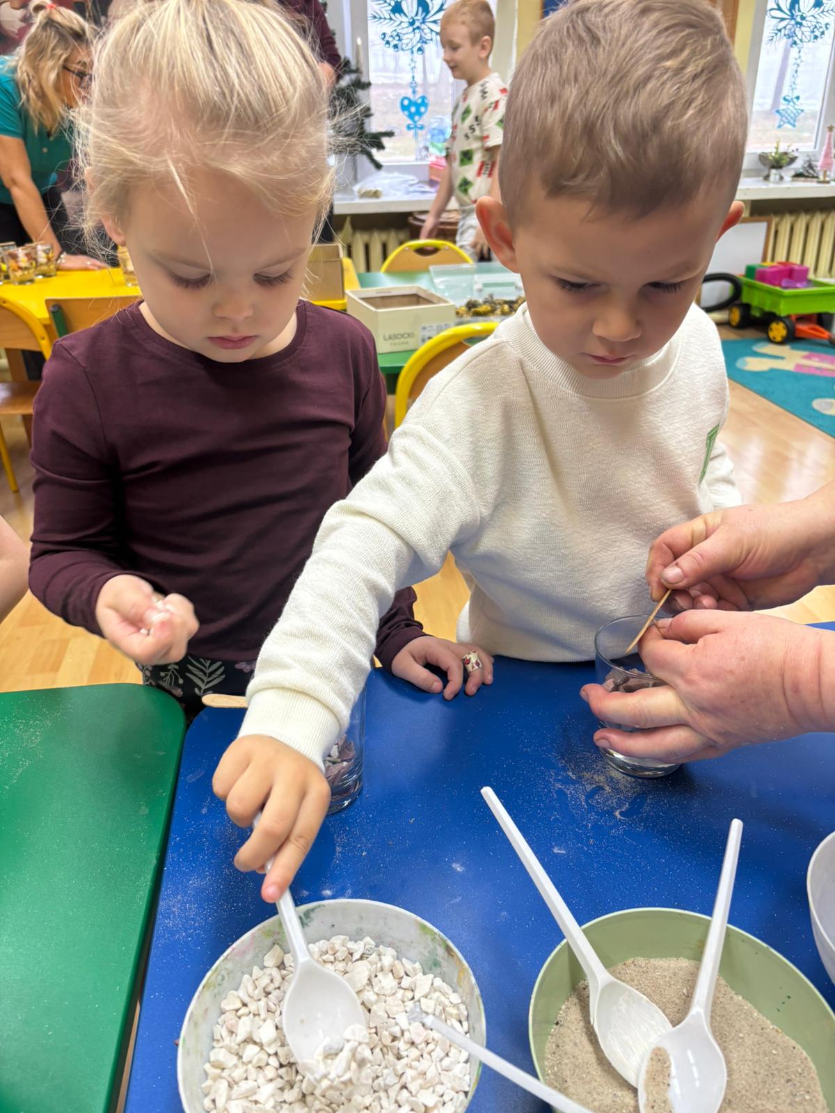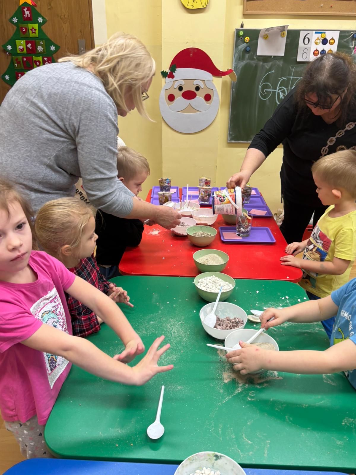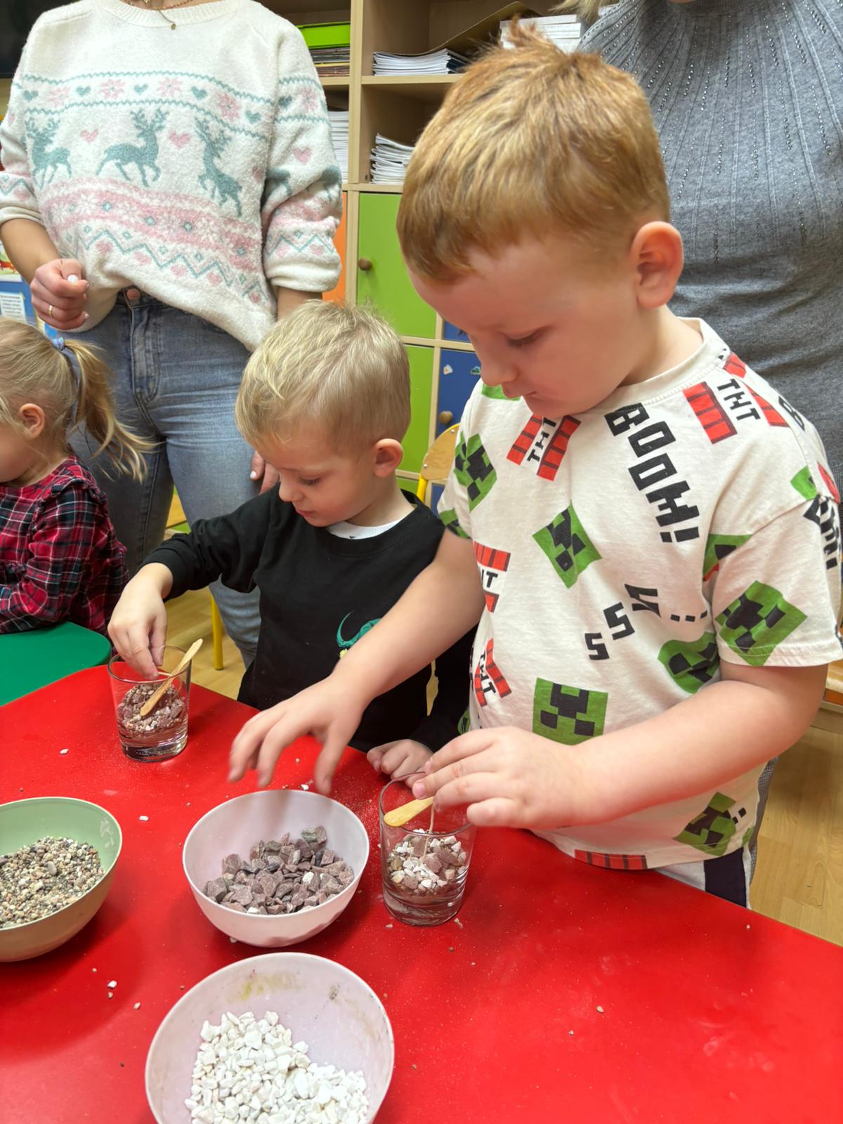 02 grudnia w naszym przedszkolu odbyły się warsztaty, na których dzieci tworzyły świece. Warsztaty były przeprowadzone przez panie z Zakładu Aktywności Zawodowej z Witowic. Dzieci z wielką radością komponowały i dobierały dekoracje do swoich siwiec, wykorzystując do tego kamyki, cekiny i ozdoby ceramiczne. Praca z takimi materiałem jest świetnym sposobem na rozwój małej motoryki jak również kreatywności i twórczość dzieci.
