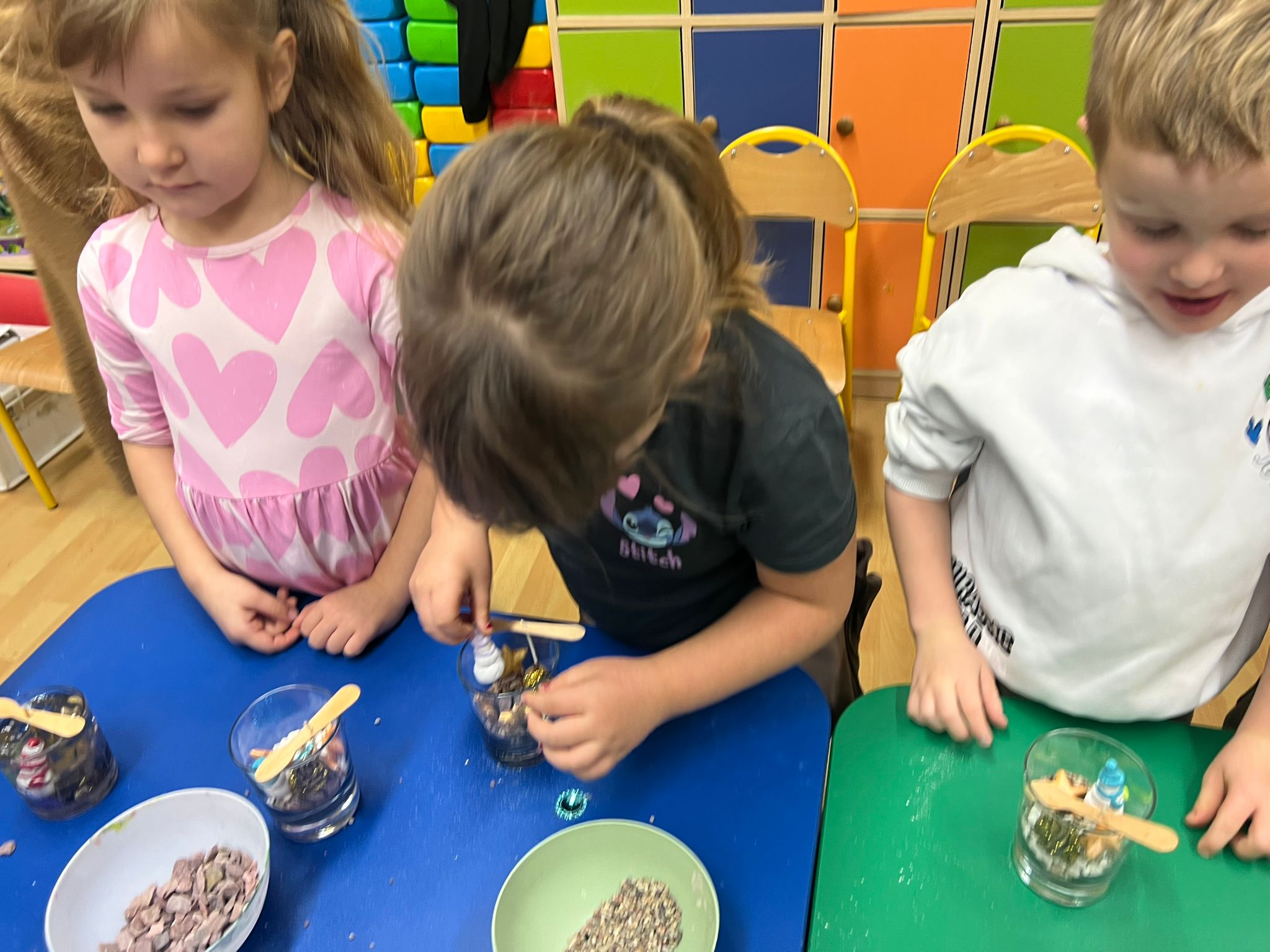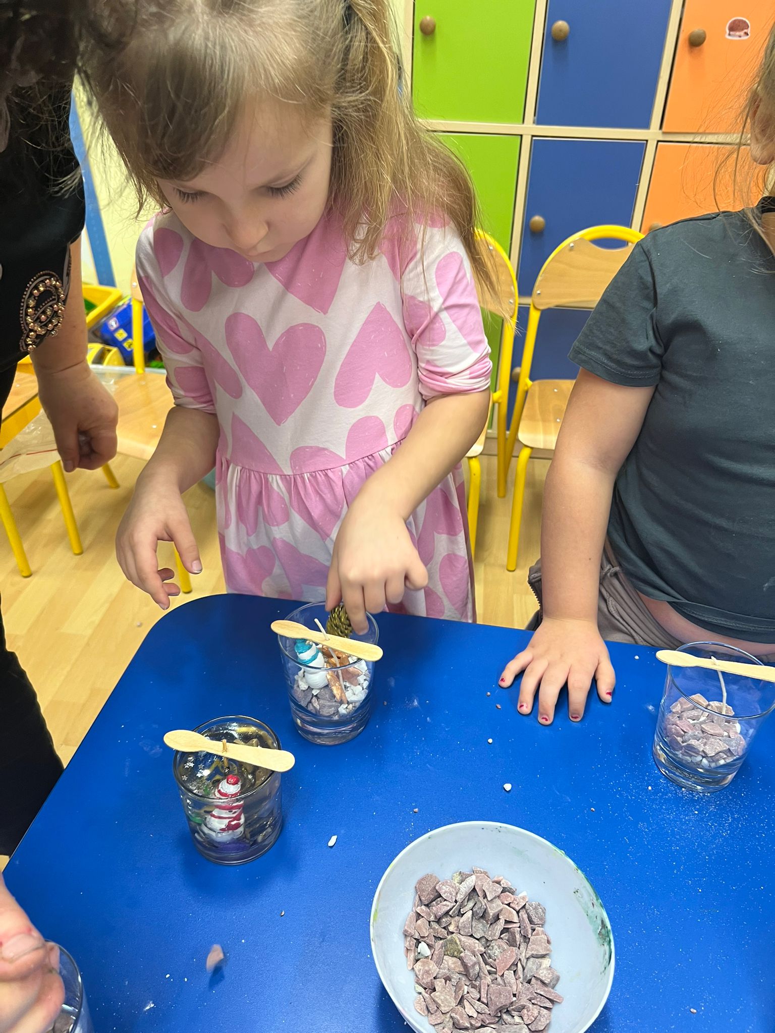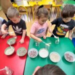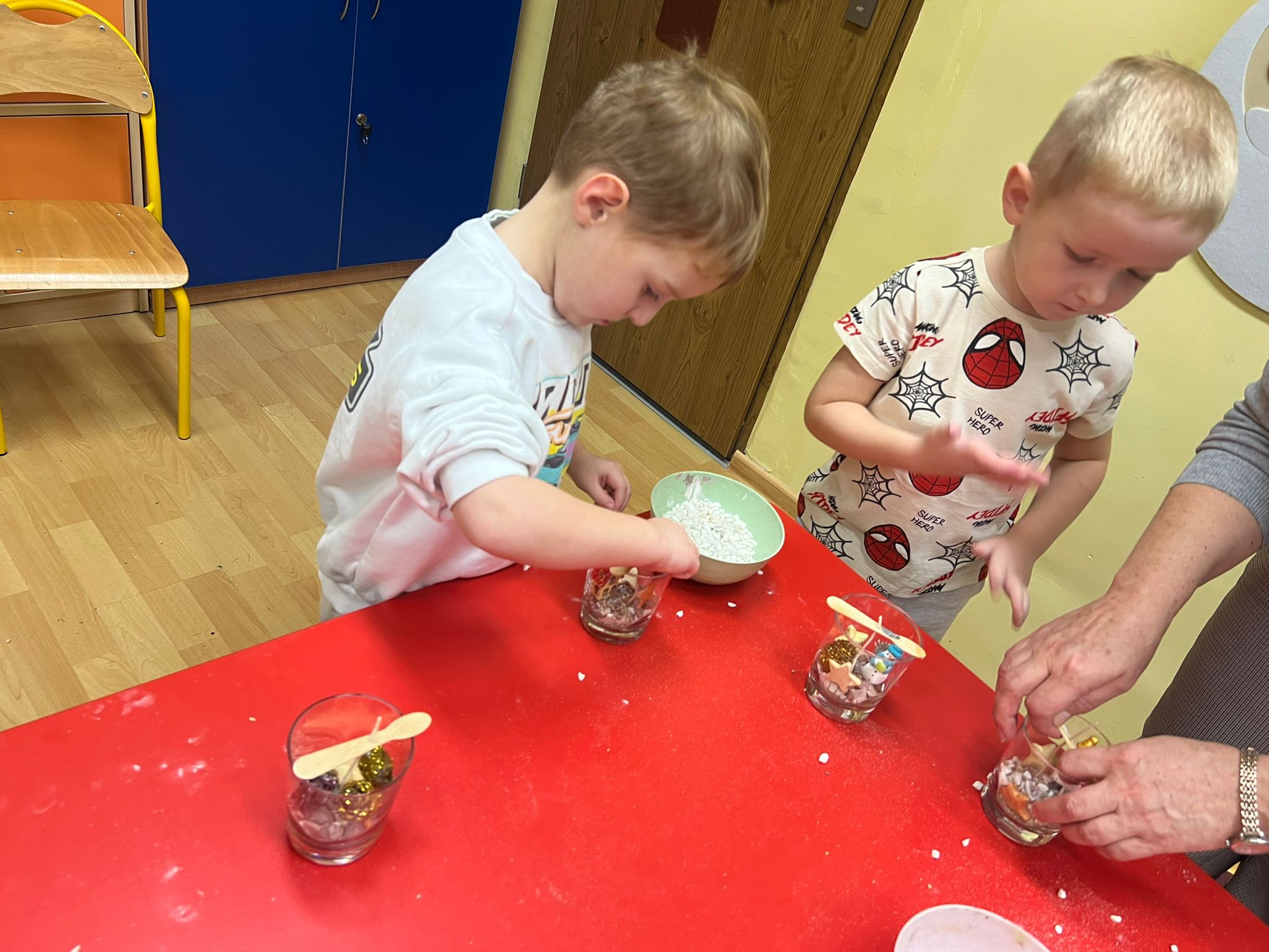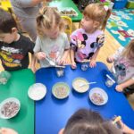 W naszym przedszkolu odbyły się warsztaty tworzenia świec żelowych, organizowane przez Zakład Aktywności Zawodowej Fabriko w Witowicach. W trakcie zajęć dzieci miały okazję stworzyć wyjątkowe świece, wykorzystując piasek kwarcowy, koraliki, figurki oraz cekiny. To doskonała okazja do rozwijania wyobraźni i zdolności manualnych najmłodszych.
