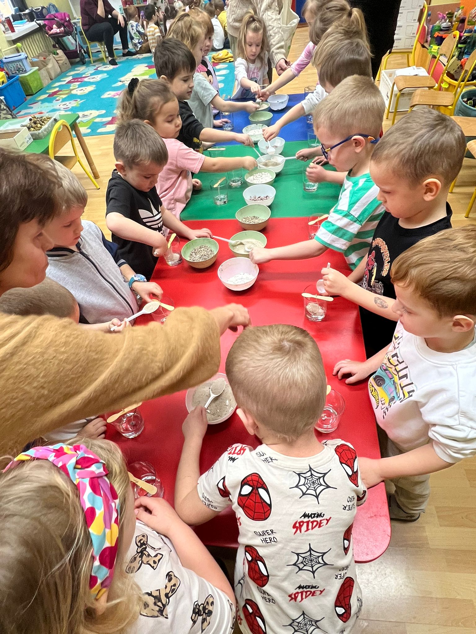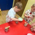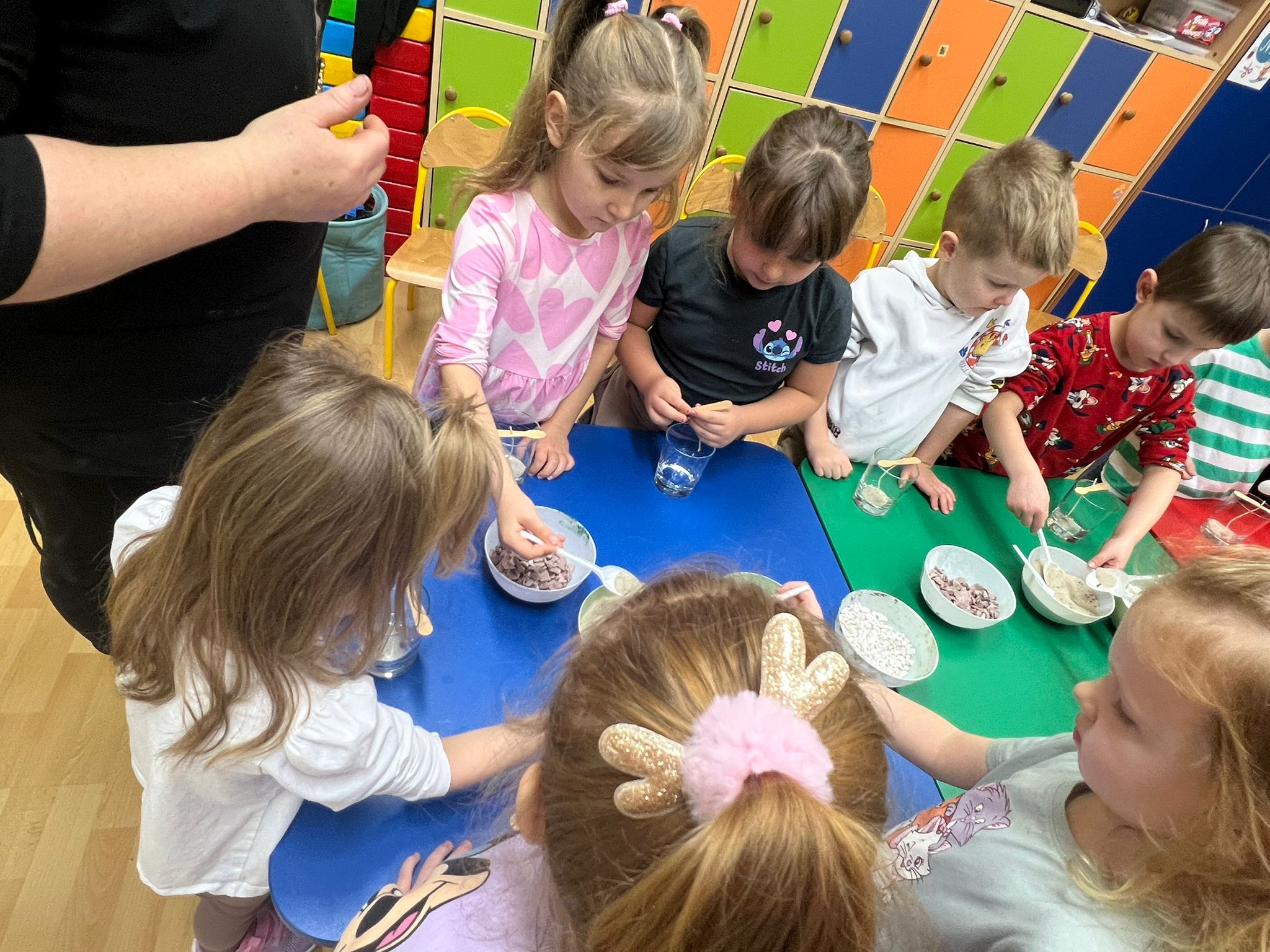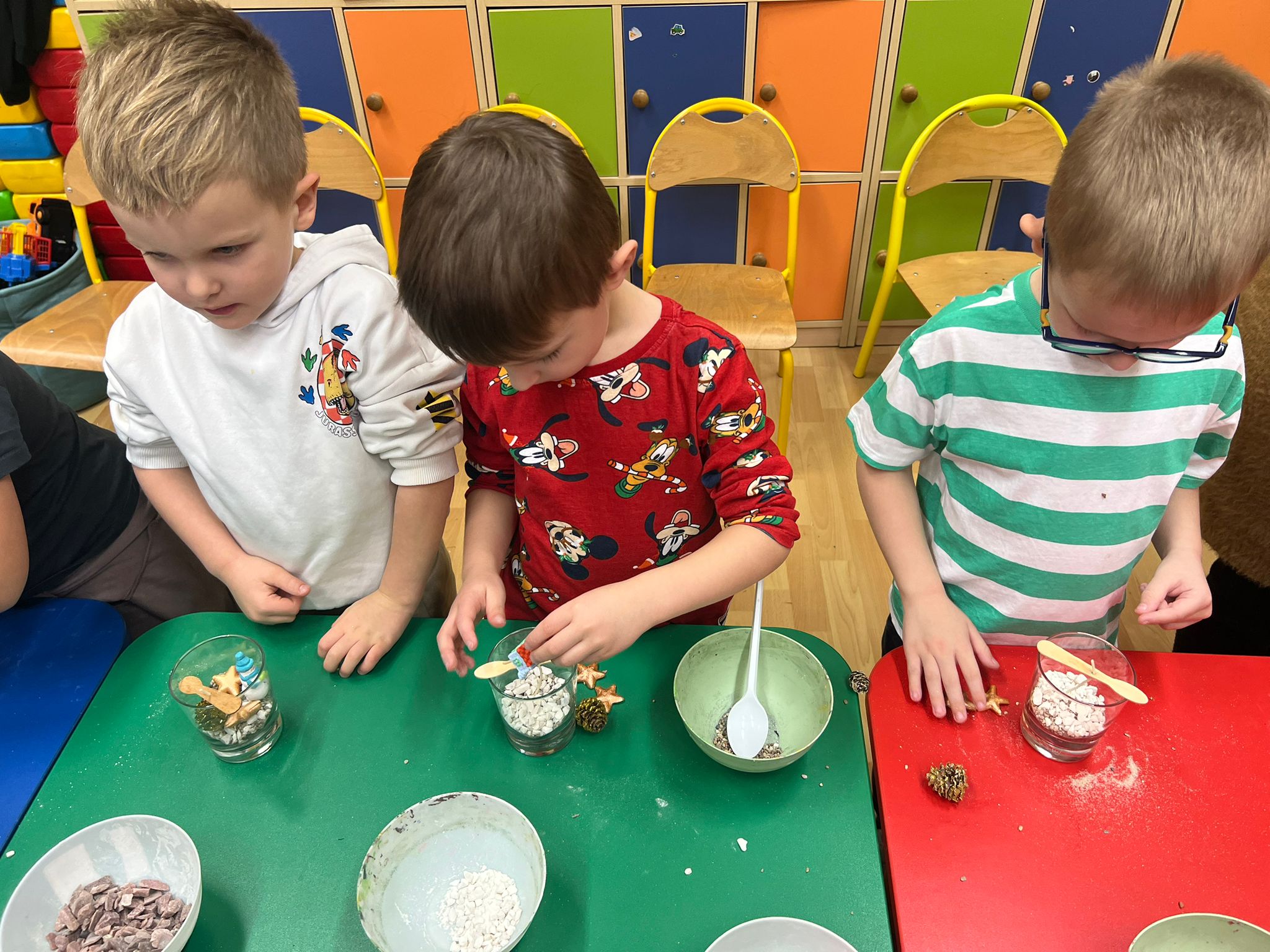W naszym przedszkolu odbyły się warsztaty tworzenia świec żelowych, organizowane przez Zakład Aktywności Zawodowej Fabriko w Witowicach. W trakcie zajęć dzieci miały okazję stworzyć wyjątkowe świece, wykorzystując piasek kwarcowy, koraliki, figurki oraz cekiny. To doskonała okazja do rozwijania wyobraźni i zdolności manualnych najmłodszych.