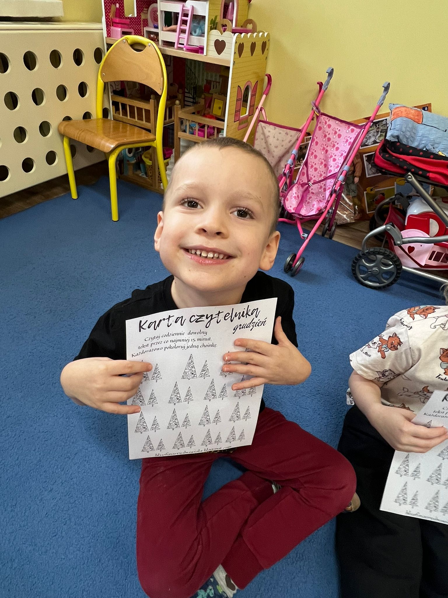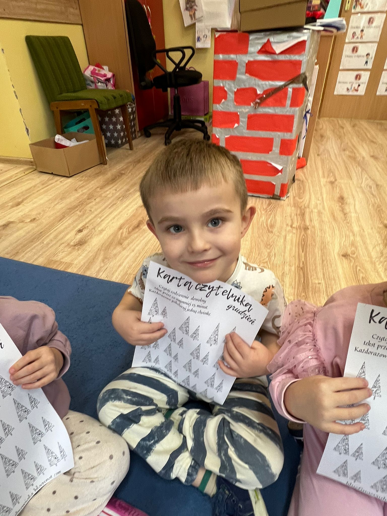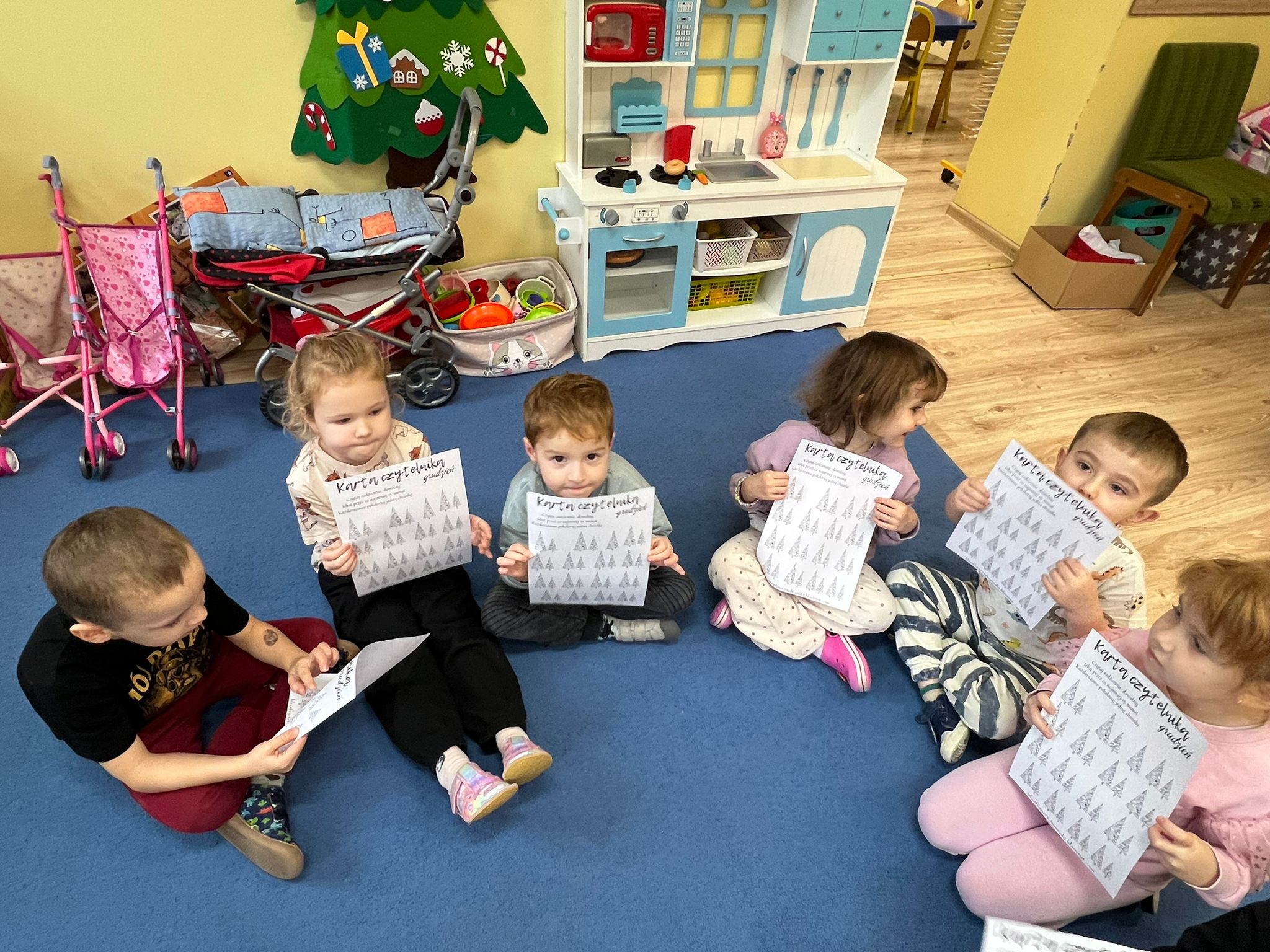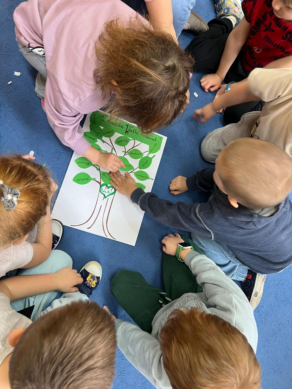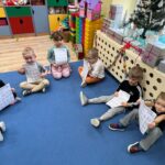Po przeczytaniu Rodzinnych Historii Wnuczki Antykwariusza zrealizowaliśmy scenariusze w ramach których dzieci odpowiedziały na pytania dotyczące danego rozdziału. Rozmawialiśmy o rodzinnych historiach dzieci. Sówki chętnie opowiadały o swoich rodzinach. Dzieci dowiedziały się wiele ciekawych rzeczy czym jest drzewo genealogiczne, zadaniem dzieci było zrobienie takiego drzewa z rodzicami w domu. Rozmawialiśmy o emocjach, dzieci wymyślały historie o stworzonych zwierzakach. W grudniu dzieci otrzymały Kartę czytelnika na grudzień w której miały zamalować jedną choinką po przeczytaniu z rodzicami jednej bajki. Karta ta przyniosła dzieciom wiele radości z możliwości czytania i kolorowania. Czytając pozostałe rozdziały rozmawialiśmy o marzeniach dzieci po czym dzieci namalowały swoje marzenia w liście do Mikołaja. Dzieci wykonały swoje talizmany z koralików i opowiadały jakie mają moce te talizmany. Wspólnie z dziećmi zrobiliśmy drzewo z imionami naszych dzieci biorących udział w projekcie „Mała Książka Wielki Człowiek”. Podczas realizacji tego projektu można było zauważyć ile radości daje dzieciom czytanie bajek i wspólna zabawa w przedszkolu i z rodzicami!
