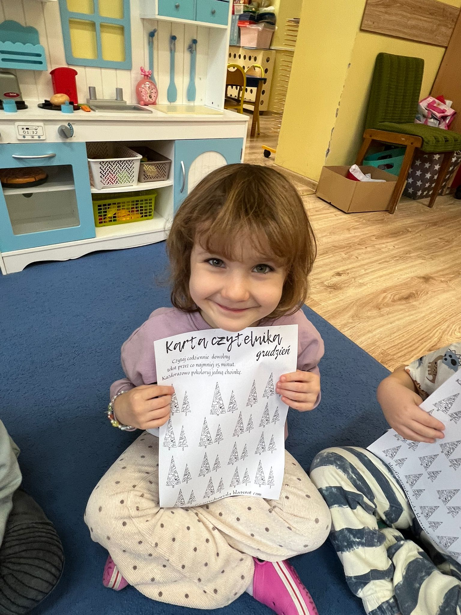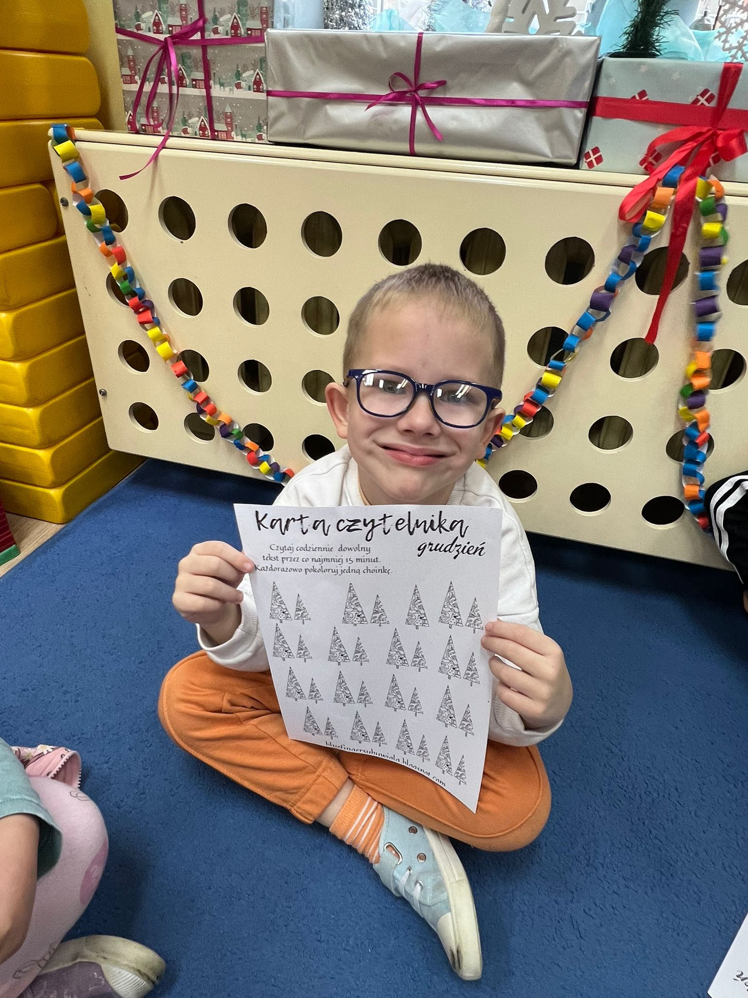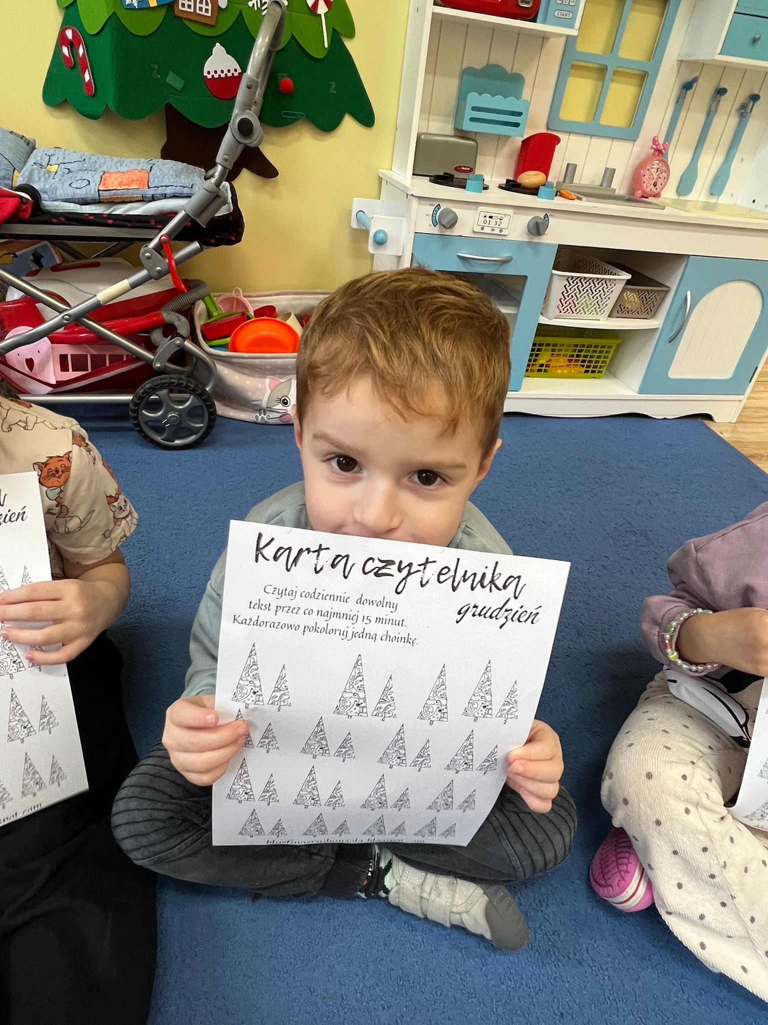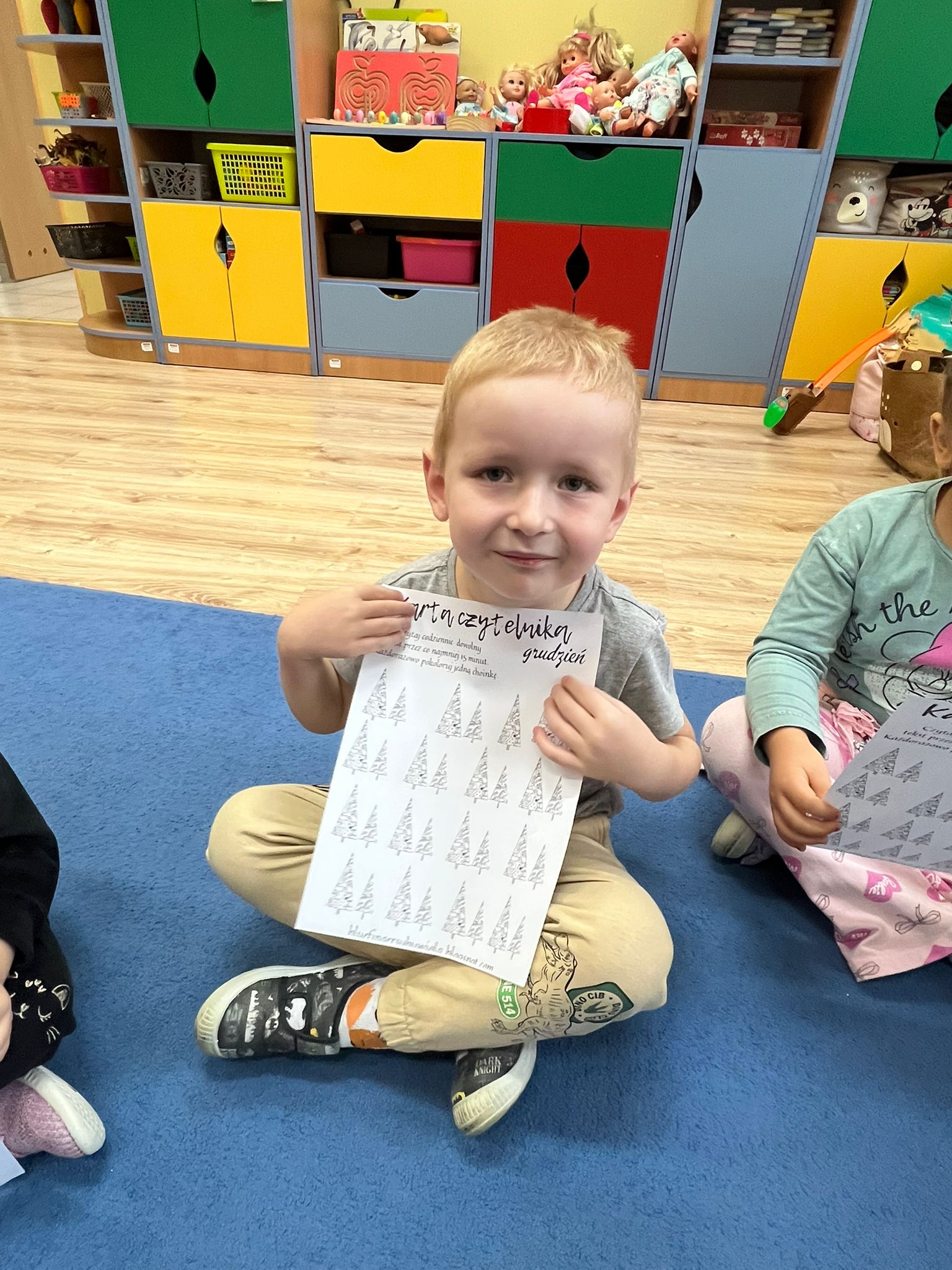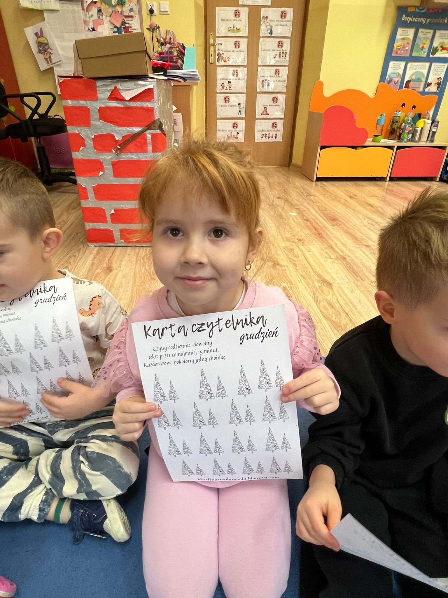 Po przeczytaniu Rodzinnych Historii Wnuczki Antykwariusza zrealizowaliśmy scenariusze w ramach których dzieci odpowiedziały na pytania dotyczące danego rozdziału. Rozmawialiśmy o rodzinnych historiach dzieci. Sówki chętnie opowiadały o swoich rodzinach. Dzieci dowiedziały się wiele ciekawych rzeczy czym jest drzewo genealogiczne, zadaniem dzieci było zrobienie takiego drzewa z rodzicami w domu. Rozmawialiśmy o emocjach, dzieci wymyślały historie o stworzonych zwierzakach. W grudniu dzieci otrzymały Kartę czytelnika na grudzień w której miały zamalować jedną choinką po przeczytaniu z rodzicami jednej bajki. Karta ta przyniosła dzieciom wiele radości z możliwości czytania i kolorowania. Czytając pozostałe rozdziały rozmawialiśmy o marzeniach dzieci po czym dzieci namalowały swoje marzenia w liście do Mikołaja. Dzieci wykonały swoje talizmany z koralików i opowiadały jakie mają moce te talizmany. Wspólnie z dziećmi zrobiliśmy drzewo z imionami naszych dzieci biorących udział w projekcie „Mała Książka Wielki Człowiek”. Podczas realizacji tego projektu można było zauważyć ile radości daje dzieciom czytanie bajek i wspólna zabawa w przedszkolu i z rodzicami!