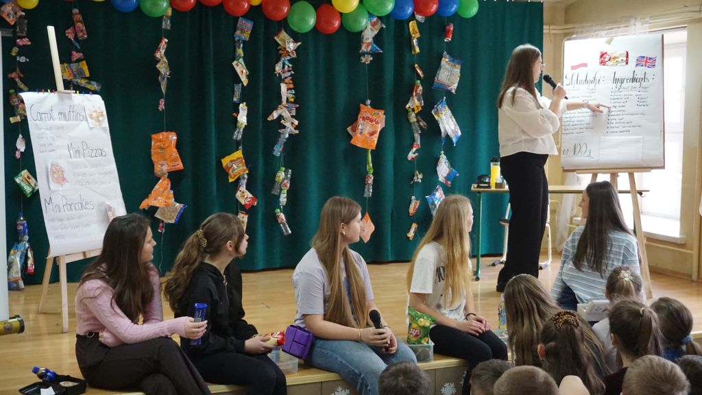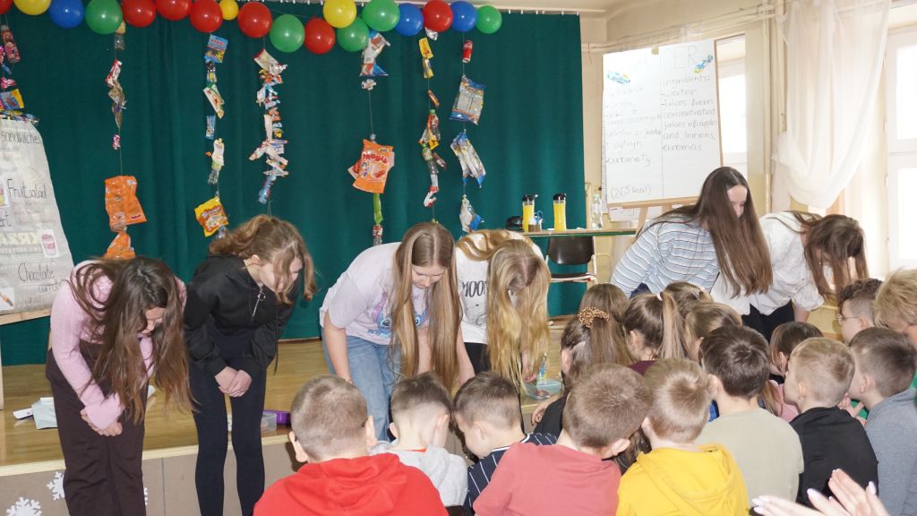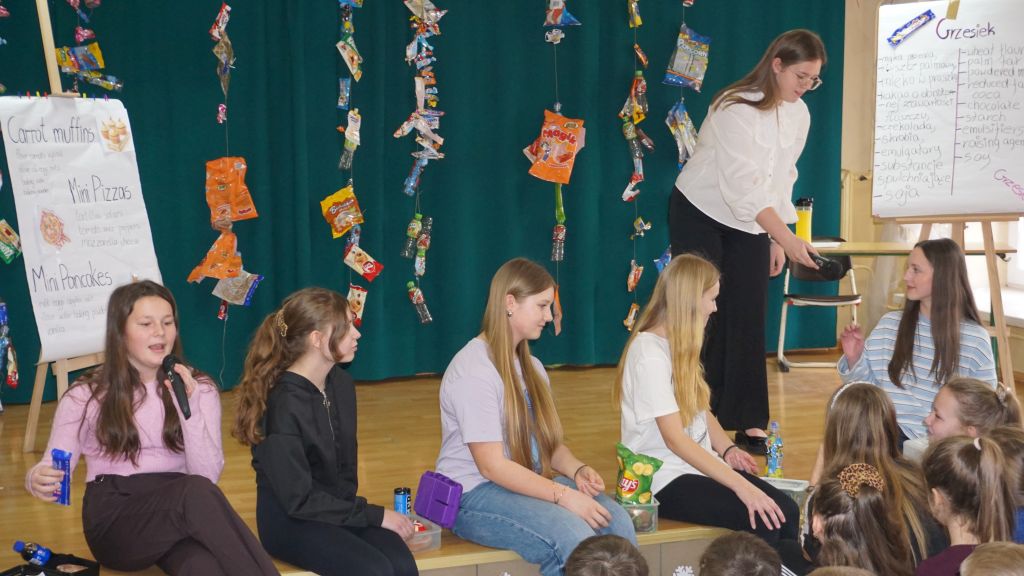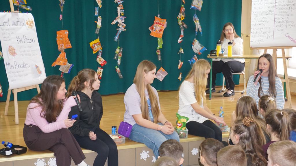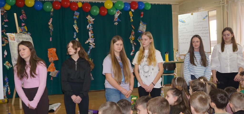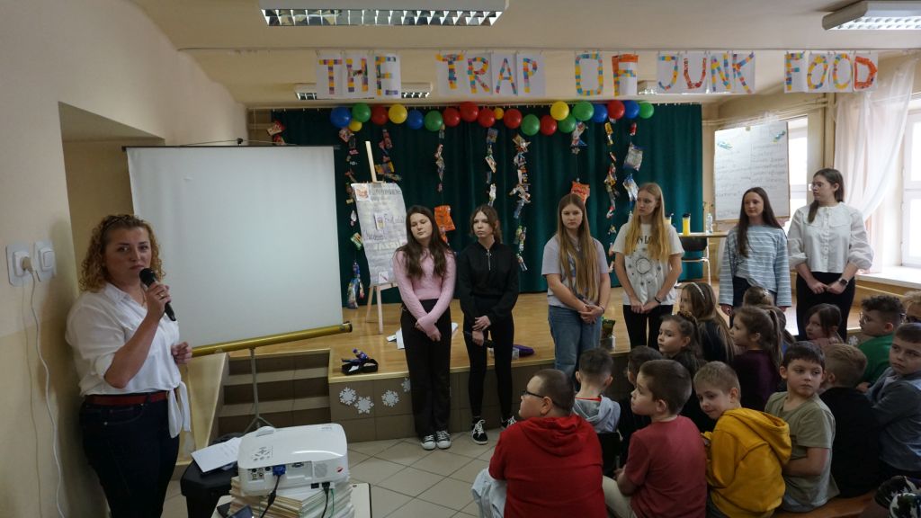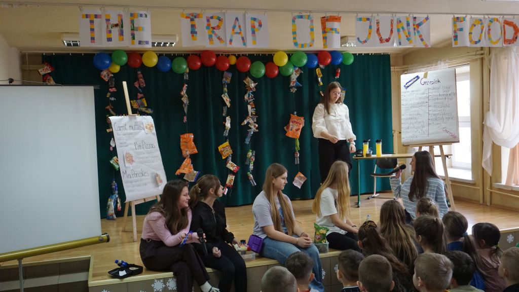 Spektakl w obrazowy i kreatywny sposób ukazał zagrożenia płynące z niezdrowego stylu życia. Ósmoklasistki, wykorzystując swoje umiejętności aktorskie (oraz świetną znajomość języka angielskiego!), przestrzegły rówieśników przed pułapkami, jakie zastawia na nas współczesny przemysł spożywczy.