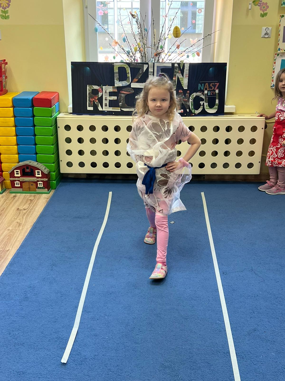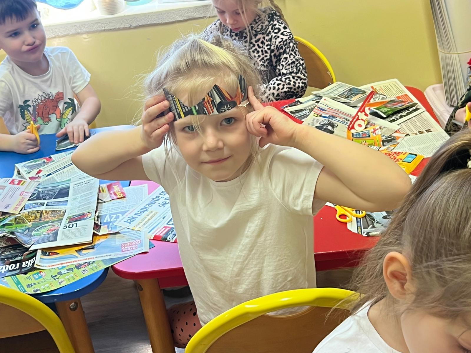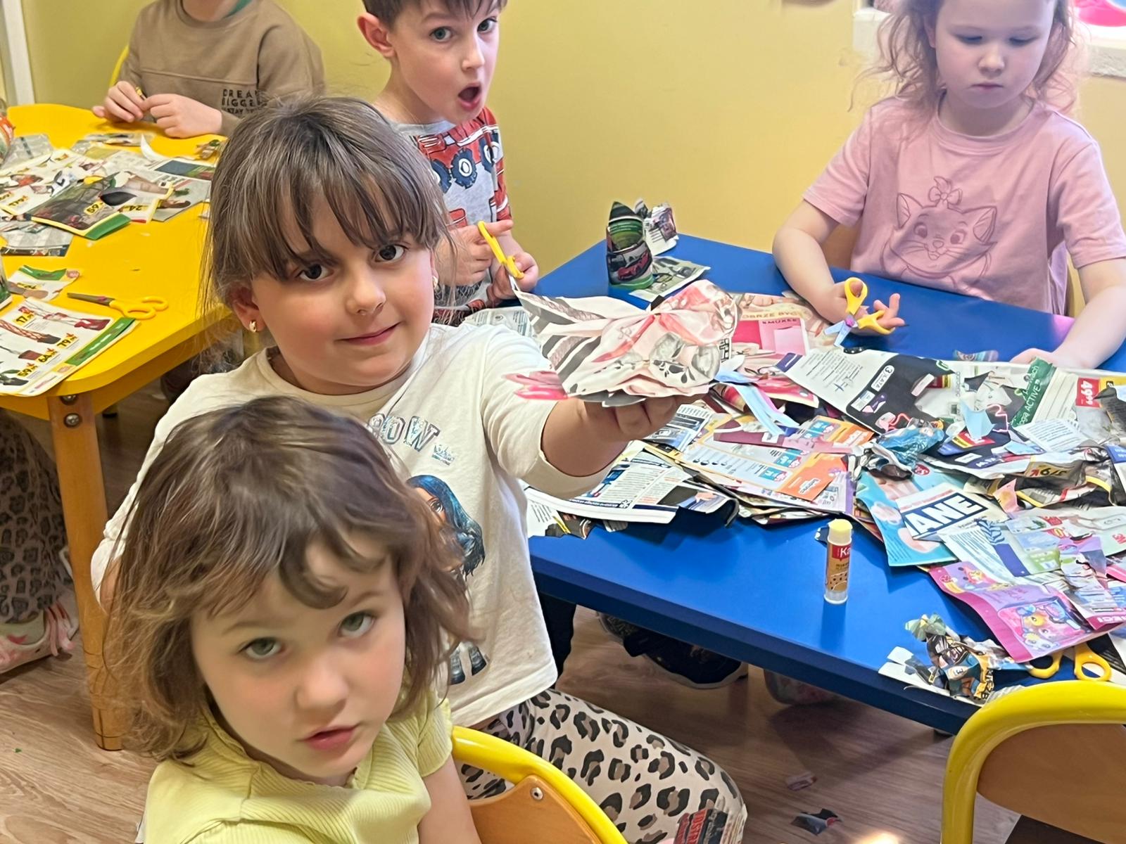Dzieci uczyły się kolorów pojemników, tworzyły prace plastyczne z surowców wtórnych, projektowały eko-stroje, eko-zabawki dając przedmiotom „drugie życie”. Sowy tworzyły piękne zabawki z papieru. Na koniec miały okazję zaprezentować się na wybiegu w eko-strojach! Zabawa bardzo się dzieciom podobała, sprawiła wiele radości z możliwości zabawy niepotrzebnymi rzeczami. Mamy nadzieję że dzień ten zapadnie w pamięci dzieci na długo.