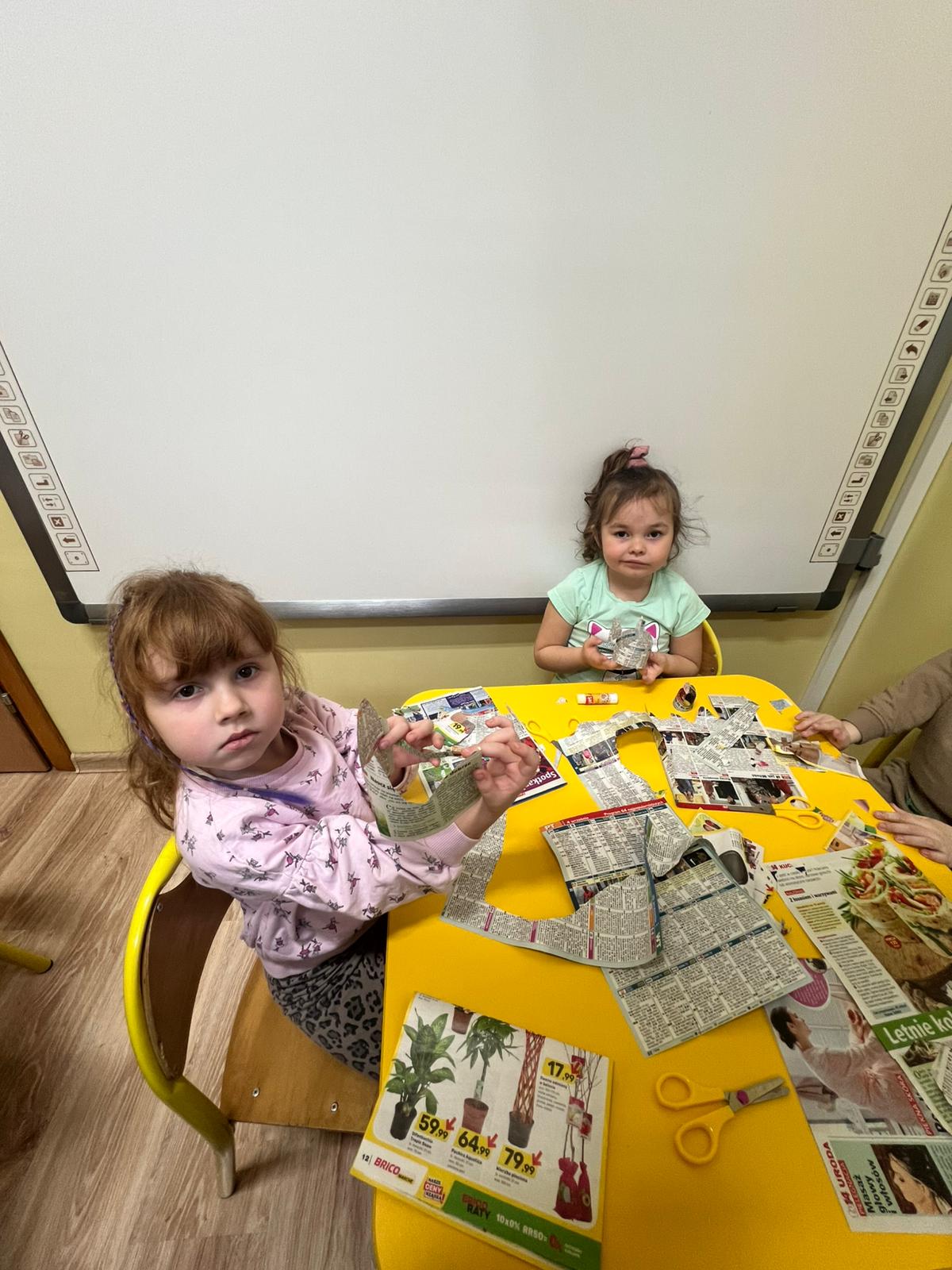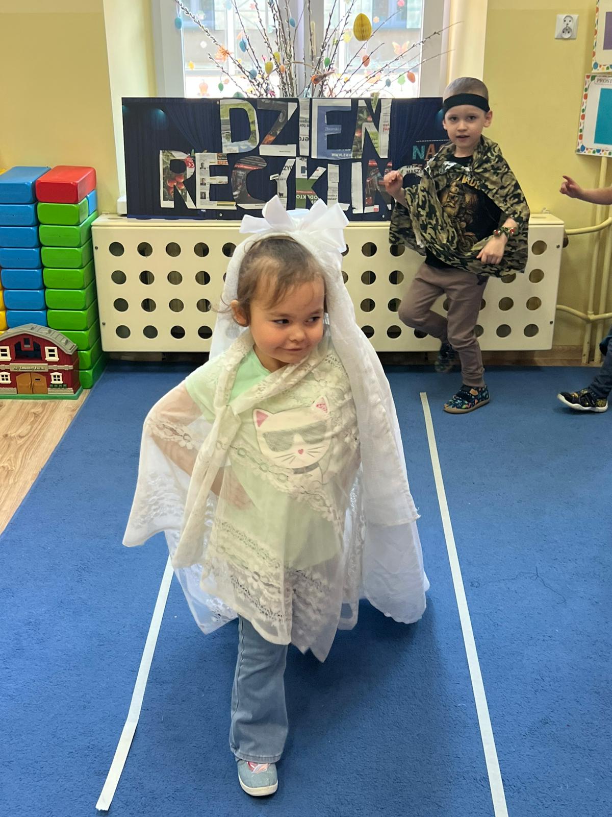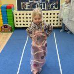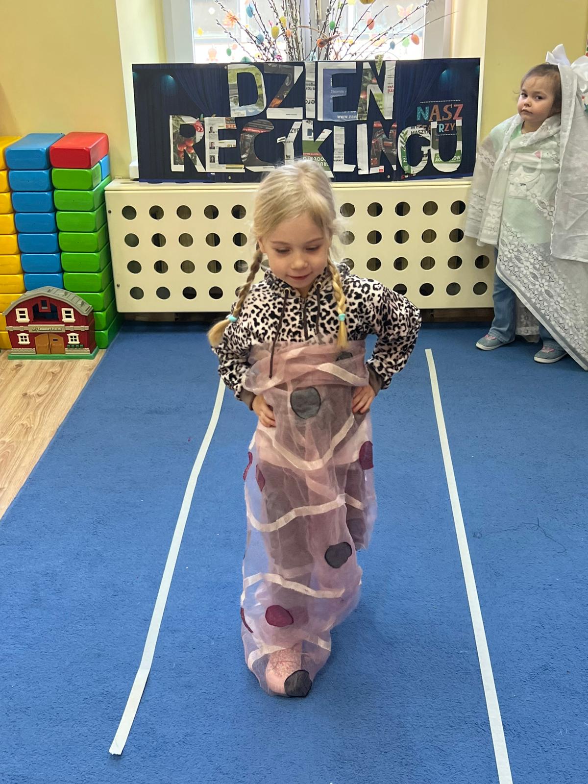 Dzieci uczyły się kolorów pojemników, tworzyły prace plastyczne z surowców wtórnych, projektowały eko-stroje, eko-zabawki dając przedmiotom „drugie życie”. Sowy tworzyły piękne zabawki z papieru. Na koniec miały okazję zaprezentować się na wybiegu w eko-strojach! Zabawa bardzo się dzieciom podobała, sprawiła wiele radości z możliwości zabawy niepotrzebnymi rzeczami. Mamy nadzieję że dzień ten zapadnie w pamięci dzieci na długo.