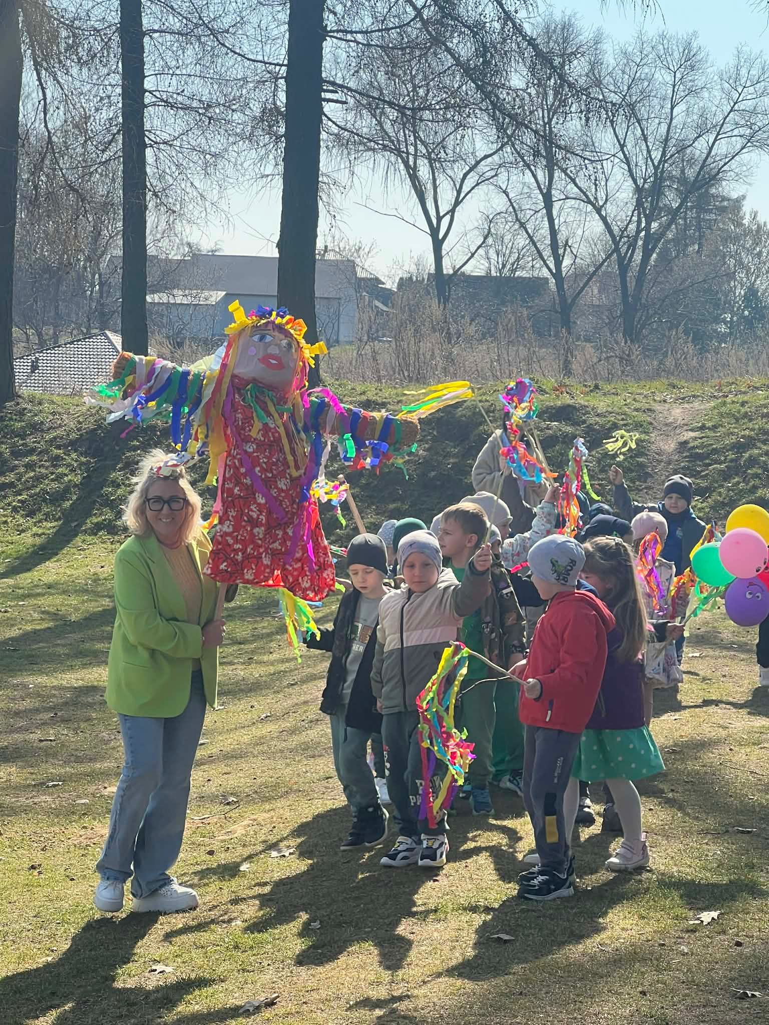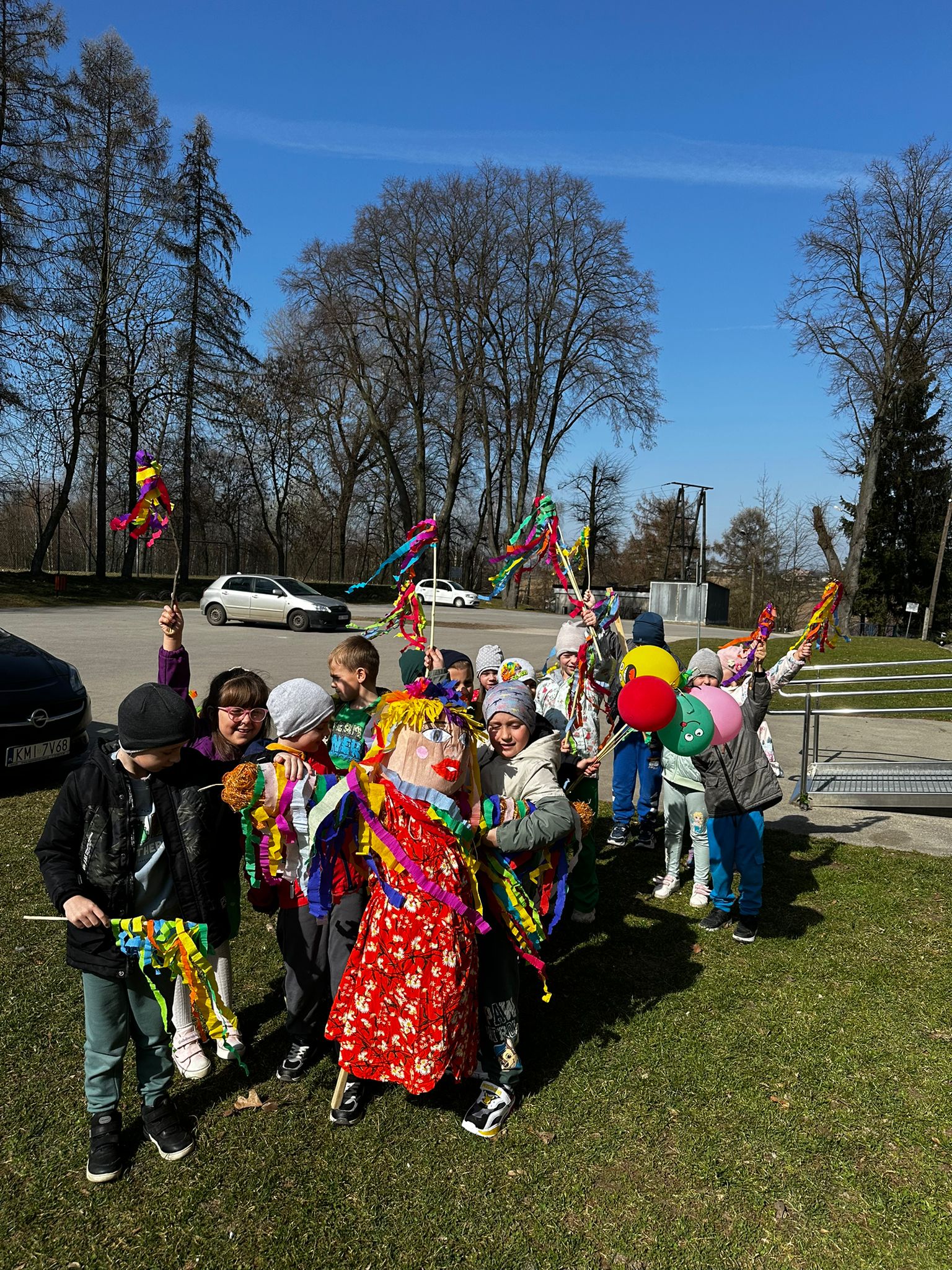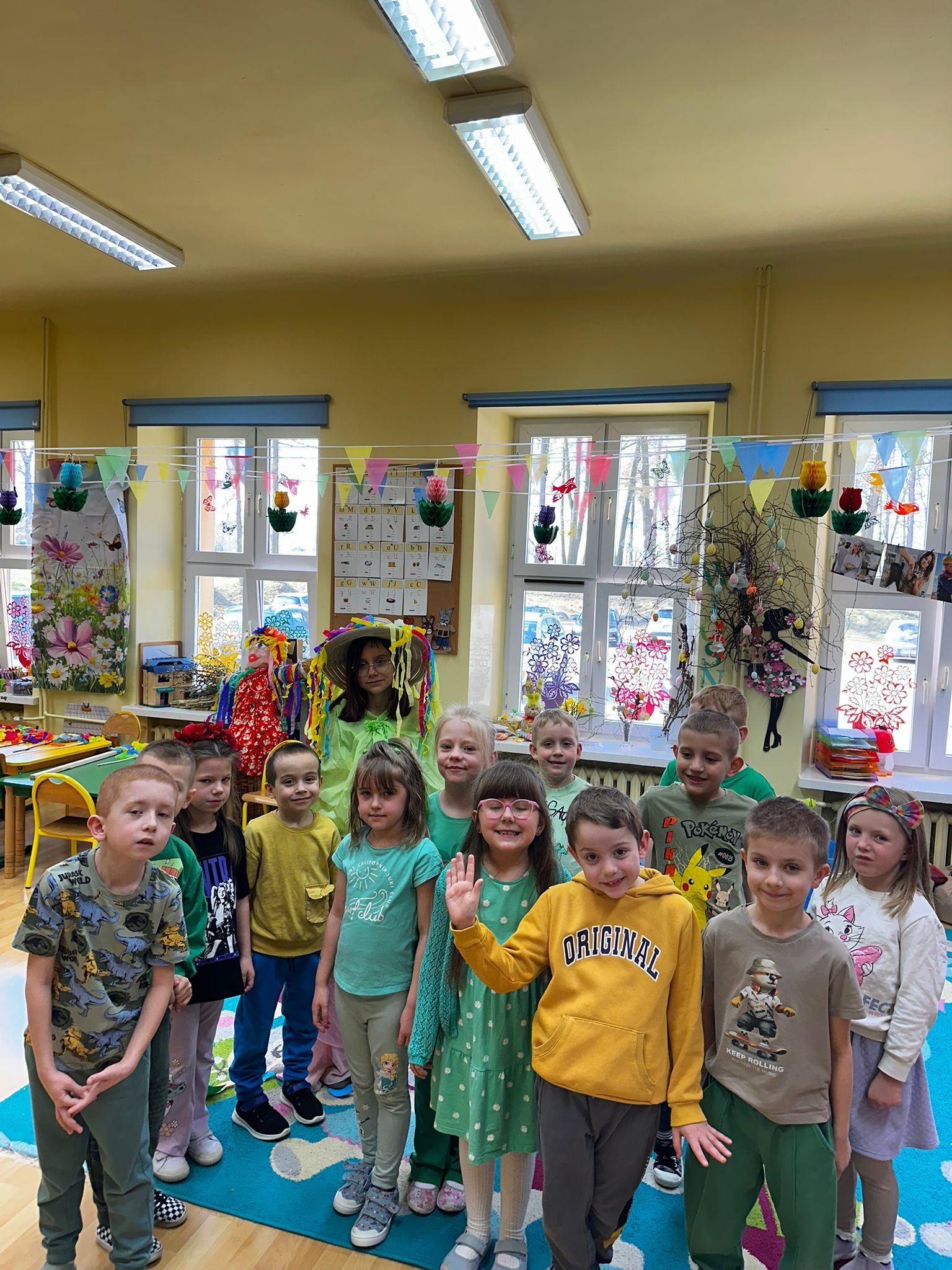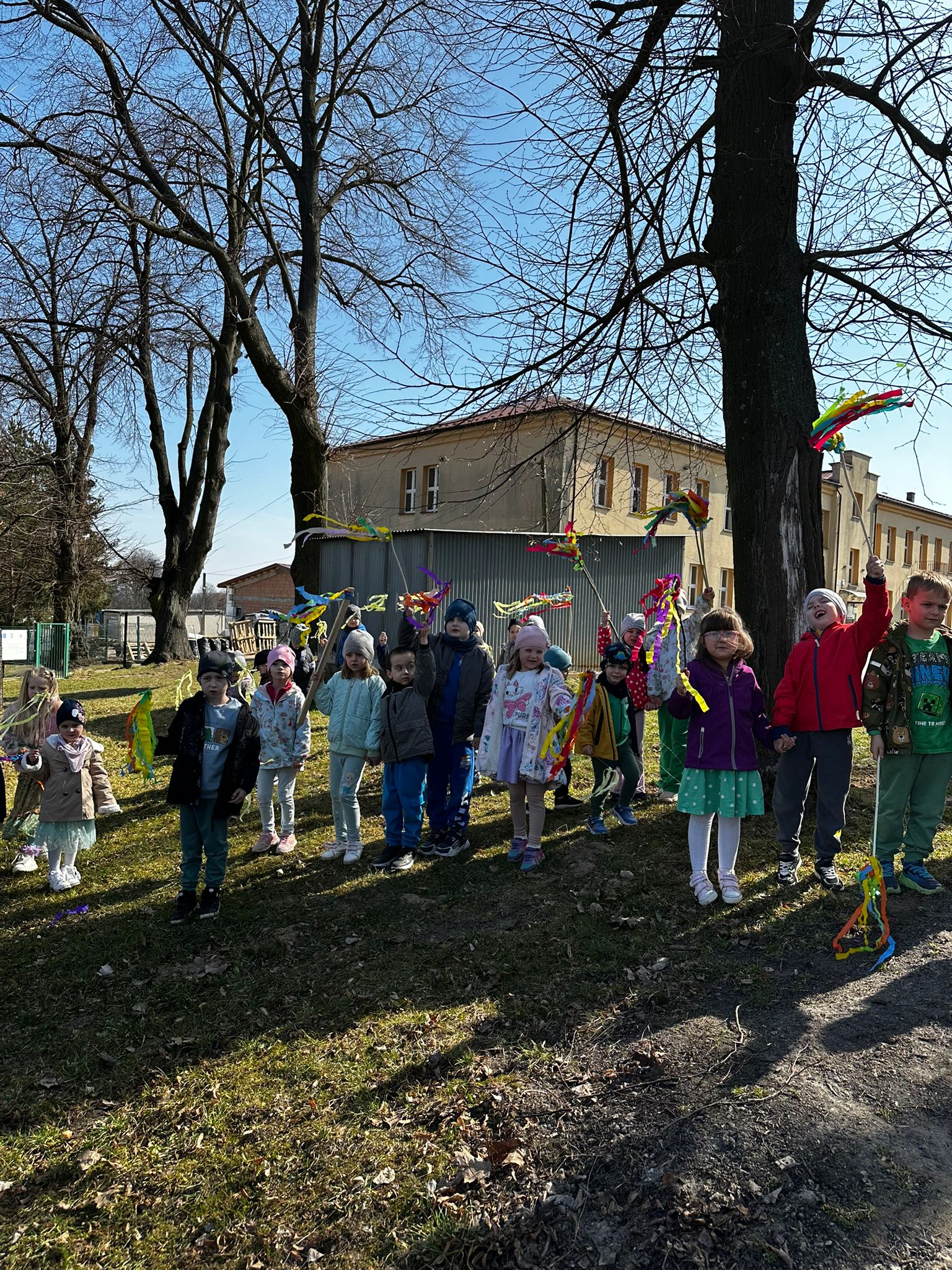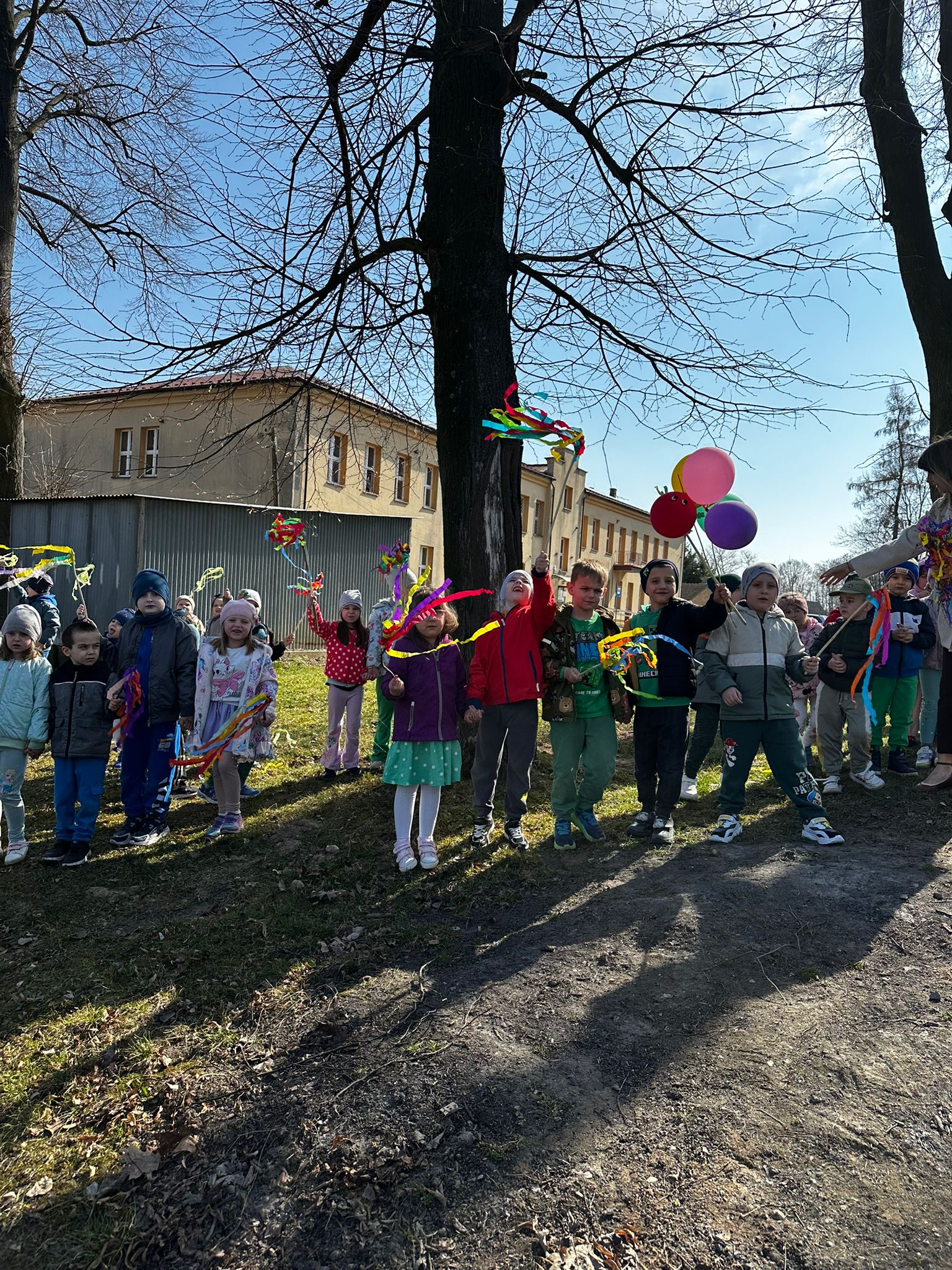 W poniedziałek 23.03.2026 Grupa Sówki oraz dzieci z pozostałych grup naszego przedszkola świętowały nadejście wiosny. Dla każdego przedszkolaka jest to bardzo wyczekiwane wydarzenie. Dzień rozpoczęliśmy od rozmów o nowej porze roku oraz od wesołych zabaw przy muzyce. Wyczekiwaliśmy czy przypadkiem Pani Wiosna właśnie nie będzie przechodziła koło naszego przedszkola. Mieliśmy szczęście zobaczyć Panią Wiosnę która szła koło naszego przedszkola i zostawiła dzieciom kwiaty. Ozdobiliśmy kolorowymi bibułkami gałązki. Uśmiechnięci wyruszyliśmy na spacer w okolicy naszego przedszkola, gdzie pożegnaliśmy zimę wraz z Marzanną. Pani Wiosna zostawiła kwiaty które pozbieraliśmy i zasadziliśmy w naszych kącikach przyrody. Dodatkowo dzieci próbowały odstraszyć zimę, śpiewając głośno piosenki o wiośnie. I tak kolorowy, ale już wiosenny, uśmiechnięty pochód mógł wrócić do przedszkola. Cieszymy się, że w taki sposób mogliśmy w pełni przywitać wiosnę, która obdarowała nas pięknym słoneczkiem. Mamy nadzieję, że dzięki zaangażowaniu naszych przedszkolaków wiosna zawita do nas na dobre, a wraz z nią ciepłe dni, z których będziemy czerpać radość.