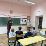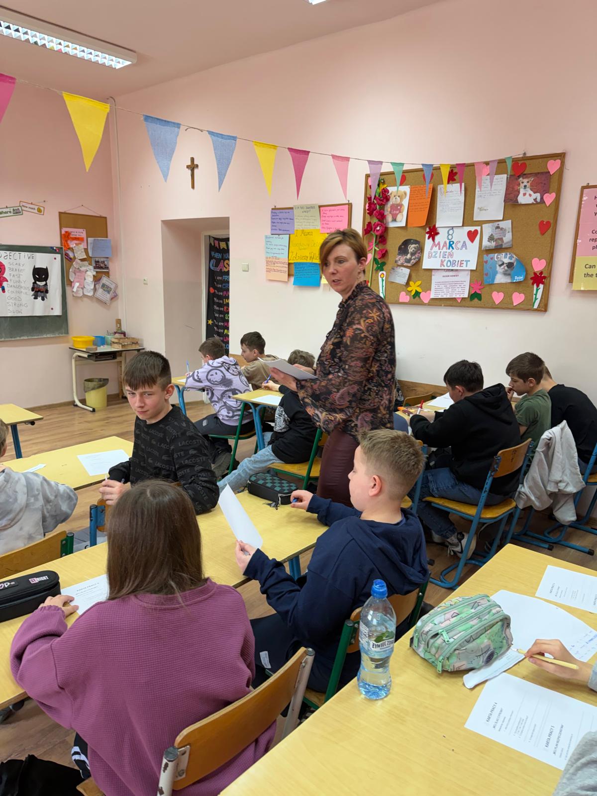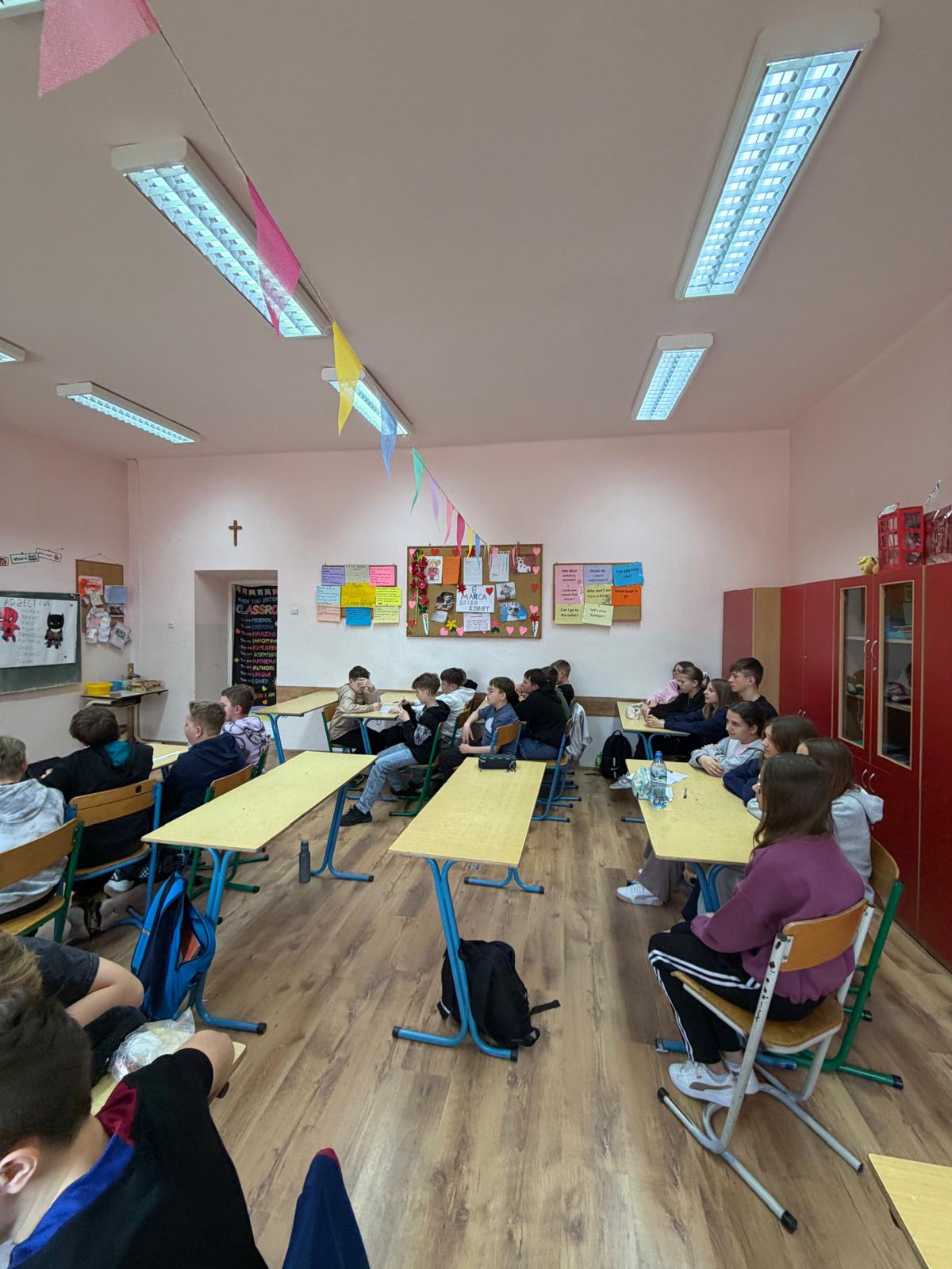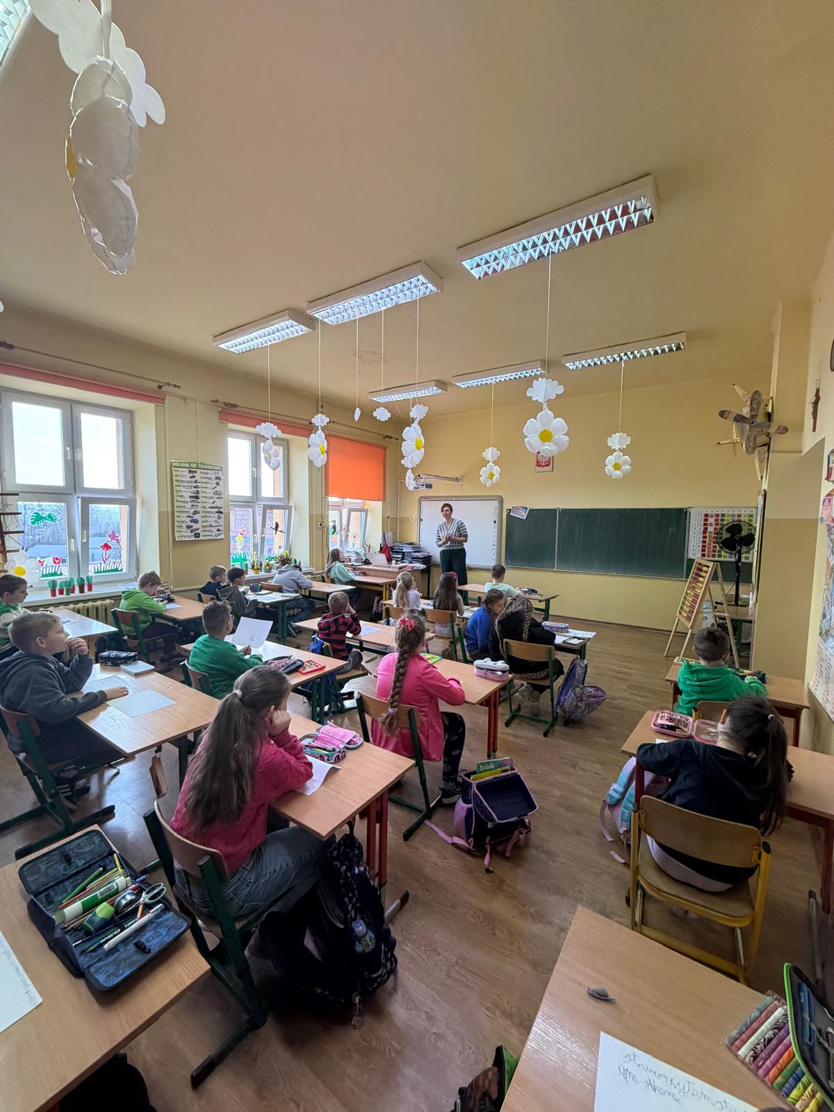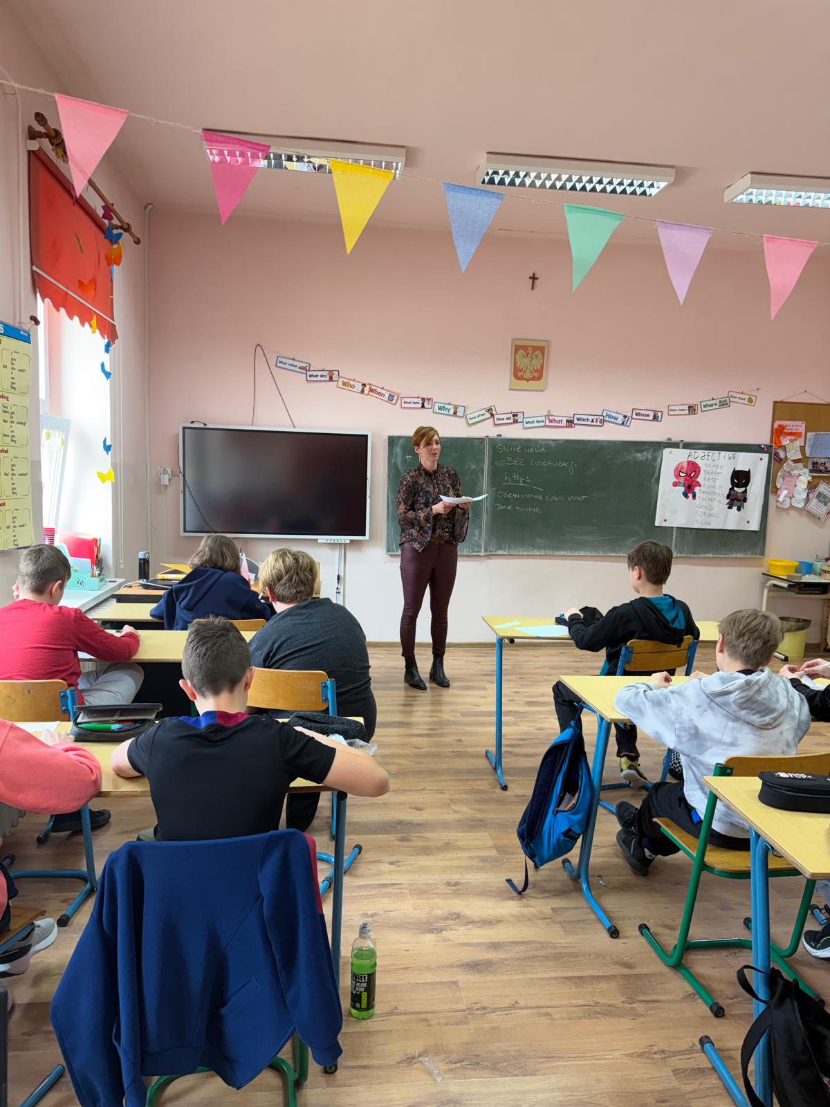 25 marca 2026r. uczniowie klasy V i VI wzięli udział w programie profilaktycznym pt. ,,Bezpieczny w sieci” prowadzonym przez panią psycholog Monikę Flądro. Głównym celem programu było dostarczenie uczniom rzetelnej wiedzy na temat negatywnych skutków nadmiernego spędzania czasu przed komputerem oraz kształtowanie postaw odpowiedzialności za własne zdrowie fizyczne i psychiczne. Podczas realizacji zajęć uczniowie mieli możliwość poznania zagrożeń wynikających z długotrwałego korzystania z urządzeń cyfrowych, takich jak problemy ze wzrokiem, wady postawy, zaburzenia snu czy trudności w relacjach społecznych.
